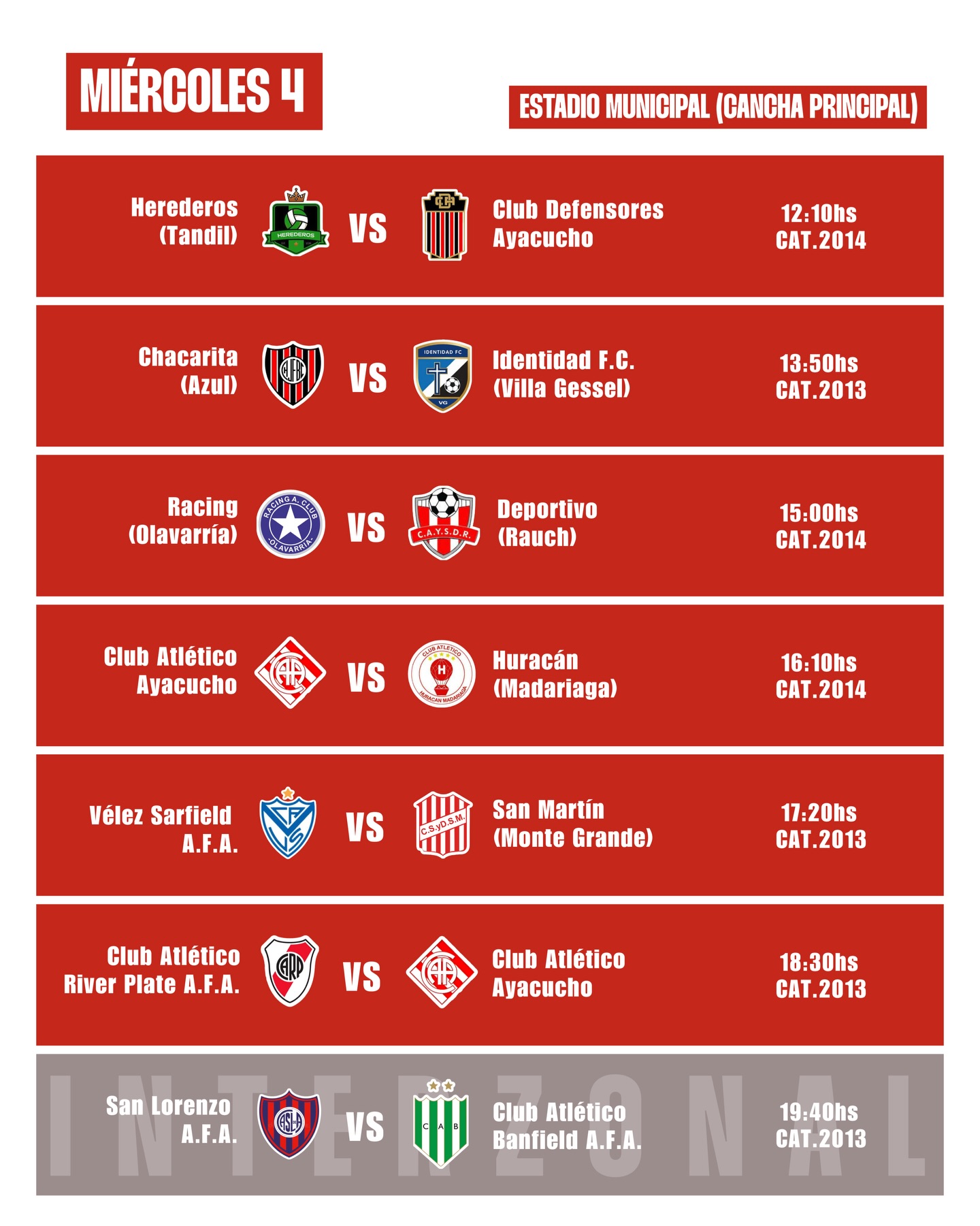 Se inicia el 22° Torneo Nacional de Atlético – Fixture de este miércoles / Transmite la 95.3 desde las 19-30 4 febrero, 2026 Pablo Tusq Deportes, deportes DIA, destacados 0 Información Oficial. Así se conforma el Fixture de este miércoles 4 de Febrero. La 95.3 transmitirá en directo con su equipo 4-3-3, a partir de las 19-30. Seguí las fechas y resultados por nuestro Sitio Web Oficial Www.torneoatleticoayacucho.com X