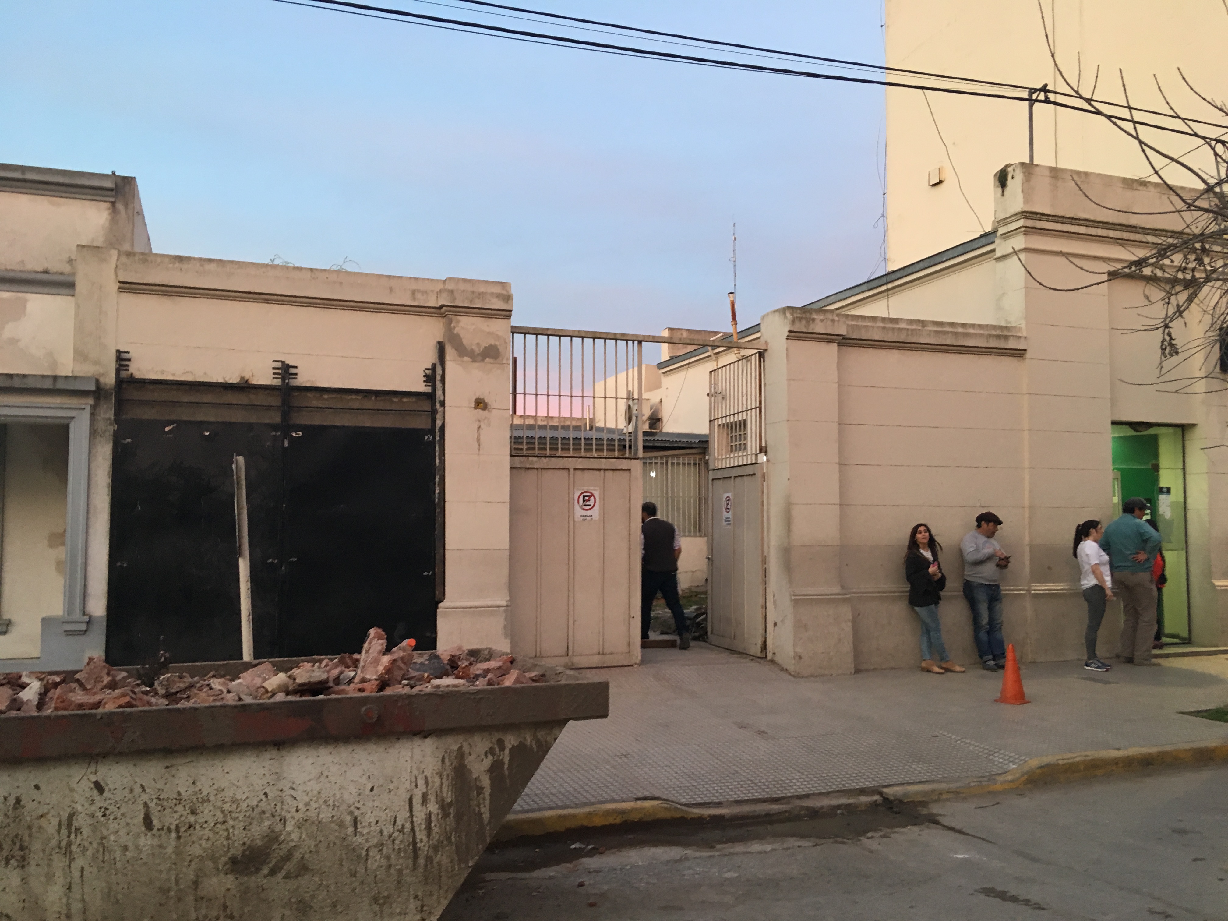 Dicho cajero se colocó del otro lado del portón que da ingreso al patio del Banco. Allí dentro se le construyó un techo para proteger al cajero que es movible y estará allí mientras se concreten las obras anunciadas.