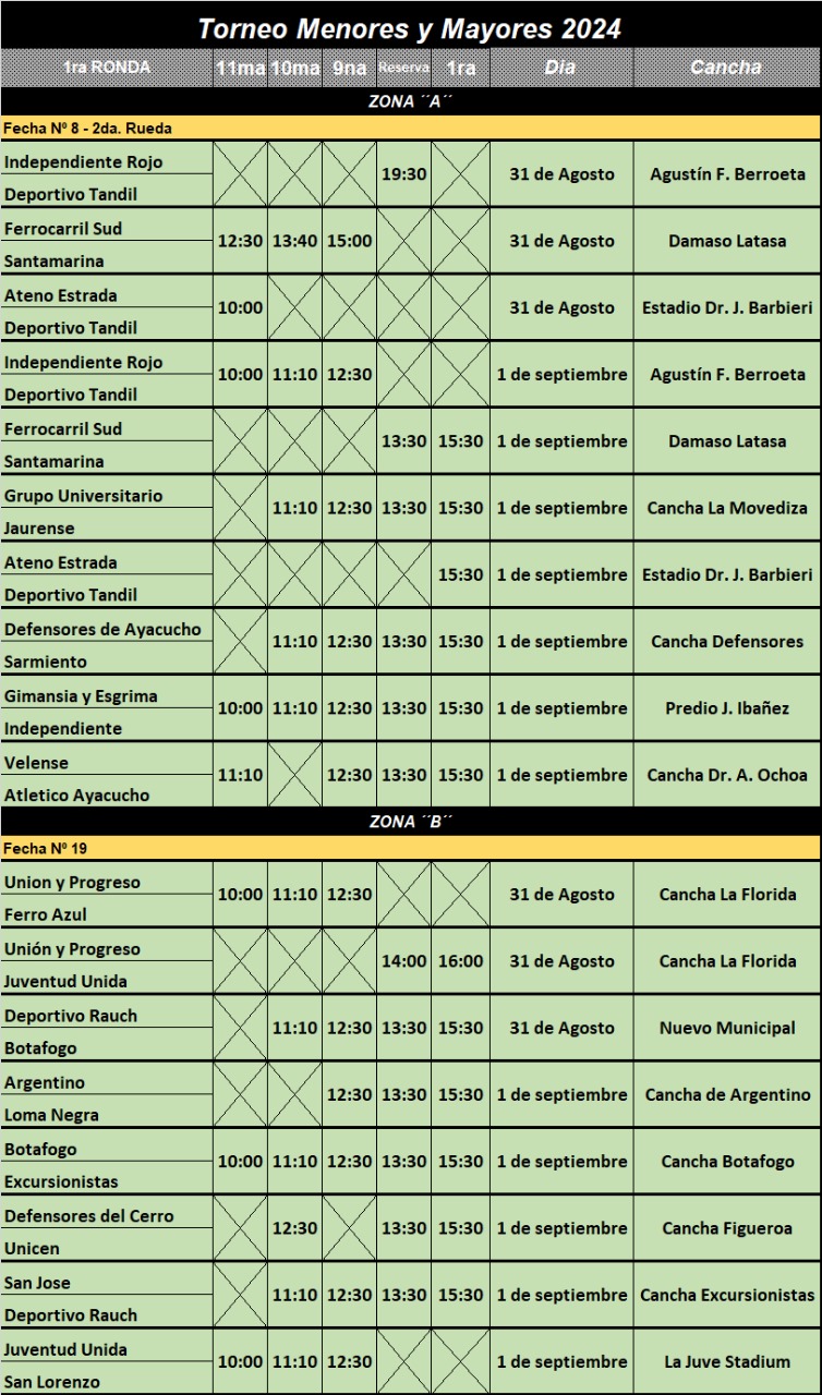 Se juega este fin de semana una nueva fecha de la URD 30 agosto, 2024 Pablo Tusq Deportes, deportes DIA, destacados 0 Con muchos partidos y varias definiciones, se dio a conocer la programación de este fin de semana para todas las categorías de la Unión Regional Deportiva. Aquí el detalle: X