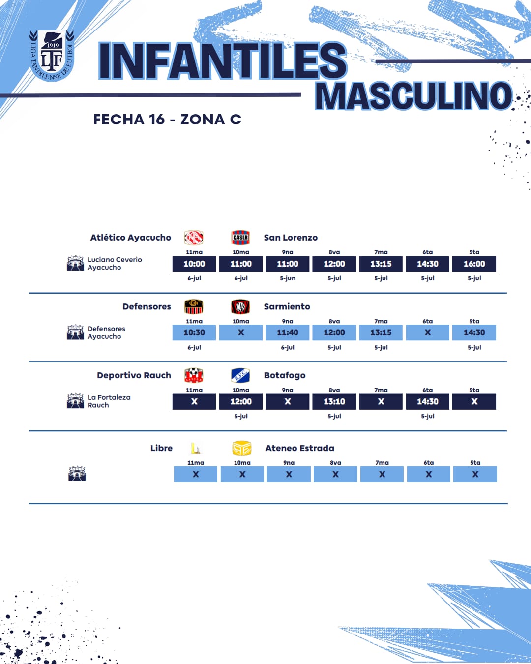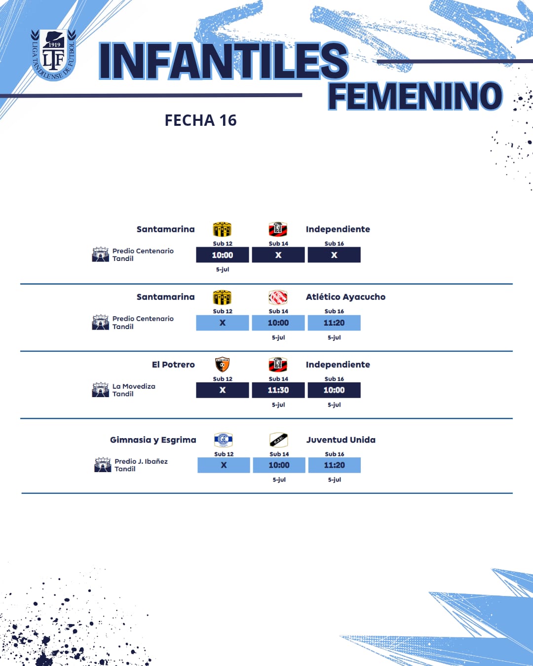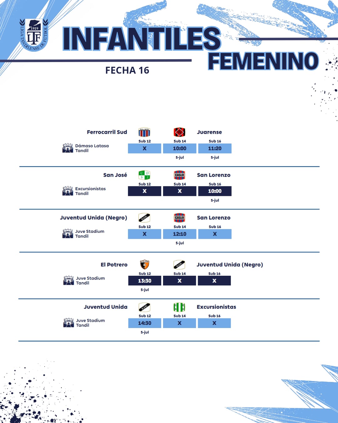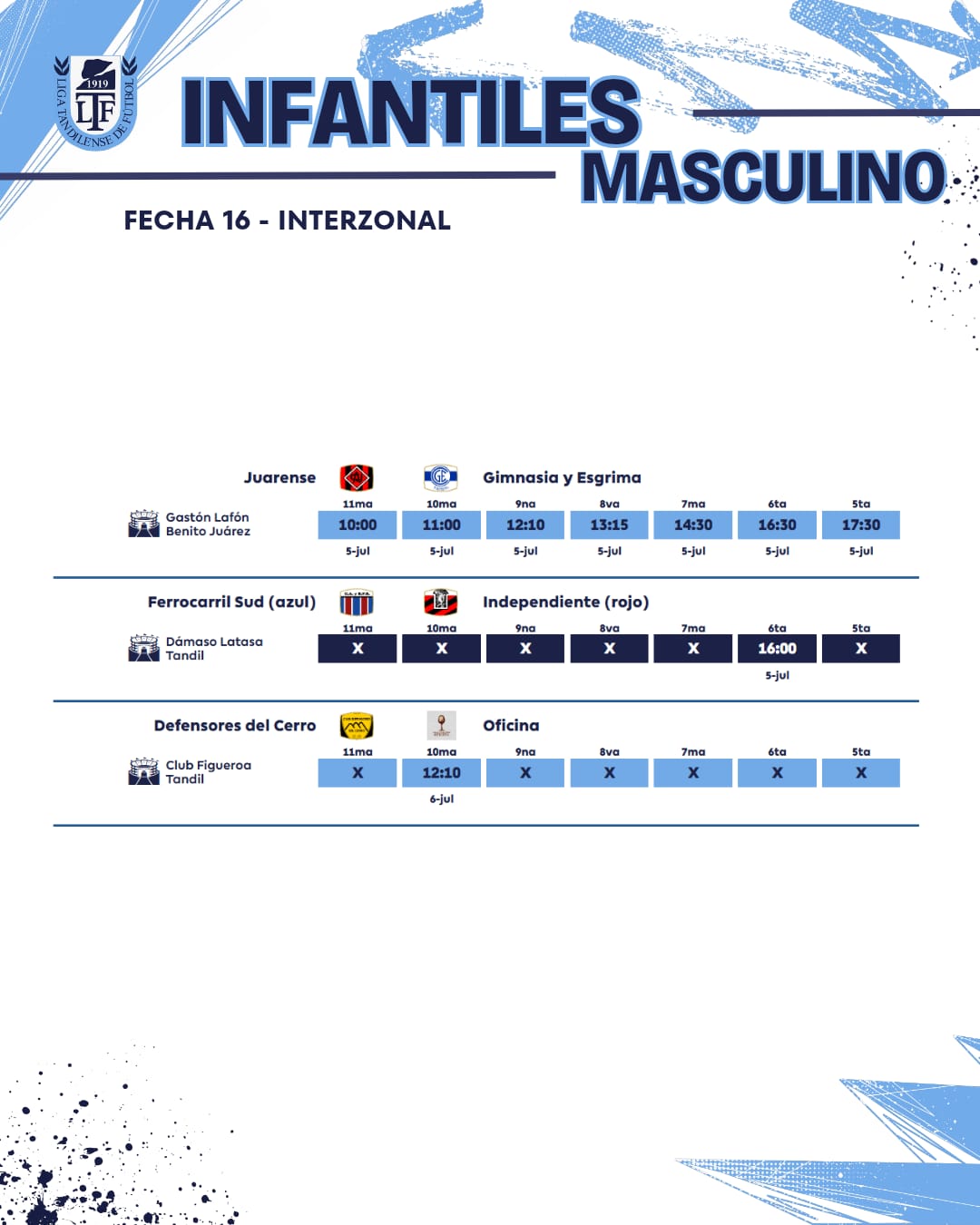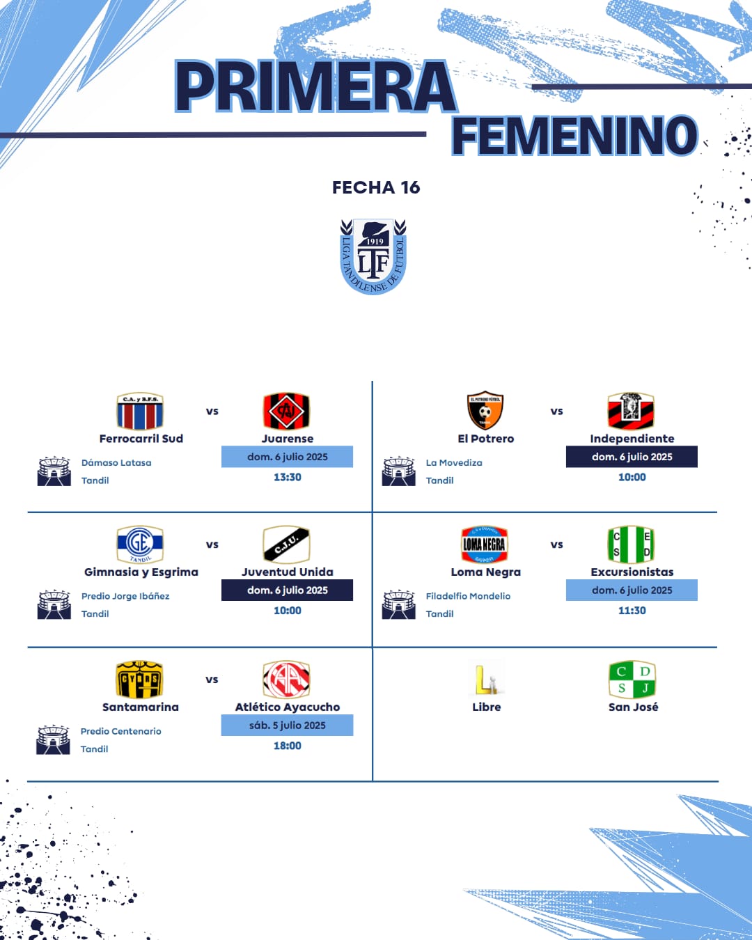 Se juega la fecha 16ta de la URD – Toda la programación / Este domingo transmite la 95.3 6 julio, 2025 Pablo Tusq Deportes, deportes DIA, destacados 0 Este fin de semana se jugará la fecha 16 de la Unión Regional Deportiva. El jueves, en el estadio Gral. San Martín, se jugará una Reserva entre Independiente Rojo y Ferro. Aquí el detalle de toda la jornada; X