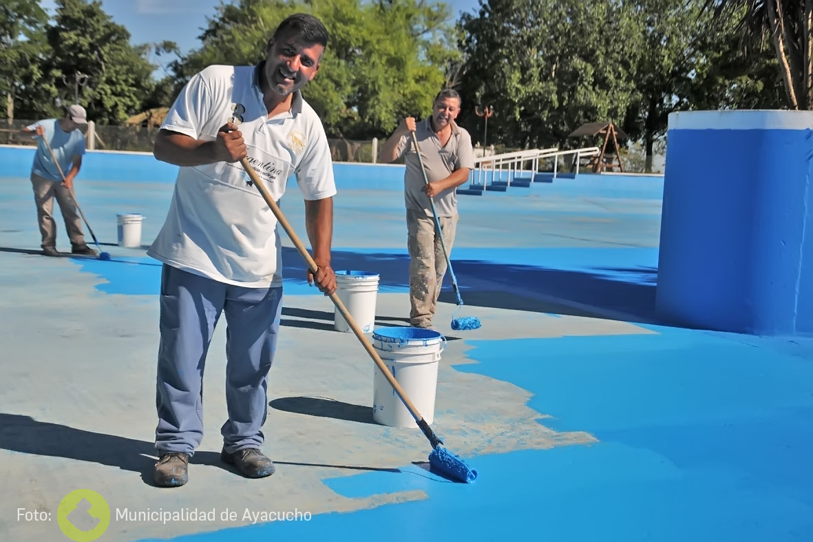 En el lugar se encuentran trabajadores del área de Obras Públicas quienes en estos días están pintando el piso, para luego continuar el trabajo completo de todo el natatorio. También se realizan tareas de parquizado en el predio y otros trabajos requeridos. Es de resaltar que previamente a la pintura, se cumplieron con tareas de limpieza integral de las inmediaciones.