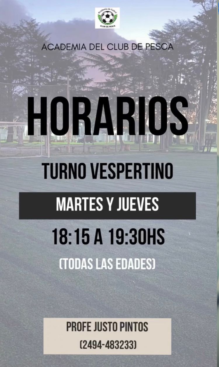 Se pone en marcha la Academia de Fútbol del «Club de Pesca» 25 febrero, 2026 Pablo Tusq Deportes, deportes DIA, destacados 0 La Academia de Fútbol del «Club de Pesca» está comenzando… X