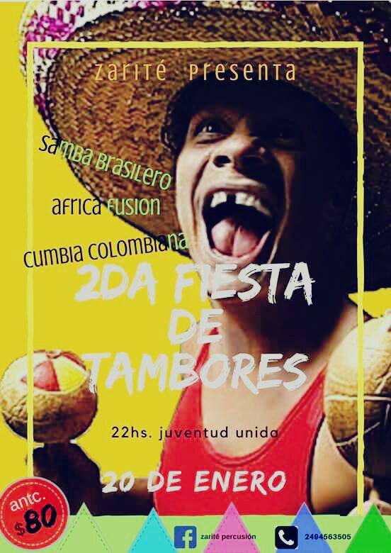 El pasado sábado en el patio del club Juventud Unida, se realizó el 2 do Encuentro de tambores…Participaron una banda de África fusión, Samba Brasilero, Stund Up, Cumbia Colombiana, y hubo dj con la mejor música….