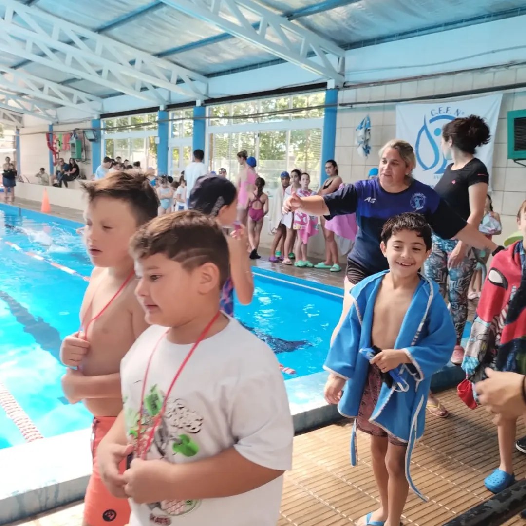 El pasado sábado desde las 10 hs, se realizó una «Muestra de Natación» en la pileta del CEF 32, con un gran acompañamiento de las familias lo cual agradeció mucho esta institución.