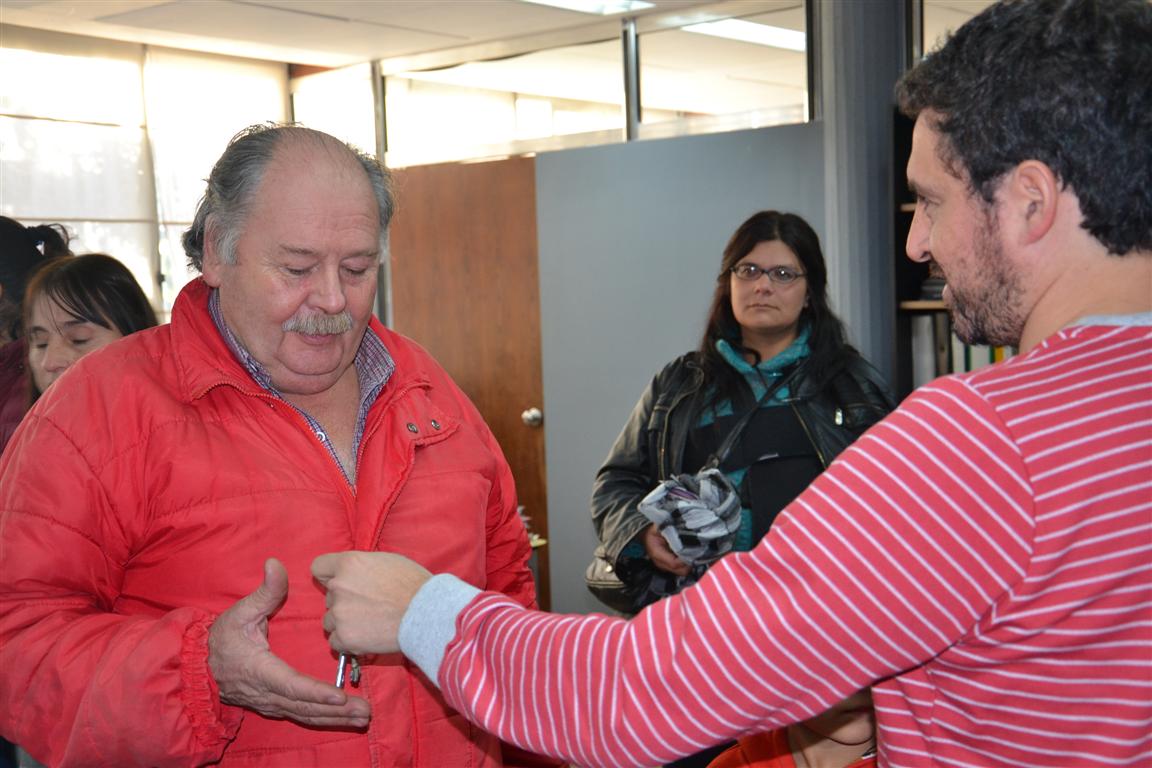 Del sorteo participaron el Intendente Emilio Cordonnier; el Secretario de Obras Públicas, Ignacio Durcodoy; la Coordinadora de Viviendas Sociales, Mónica Sarasola; el Arq. Marcos Monje; y las familias beneficiarias.
