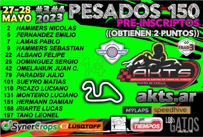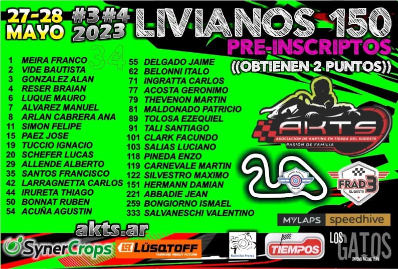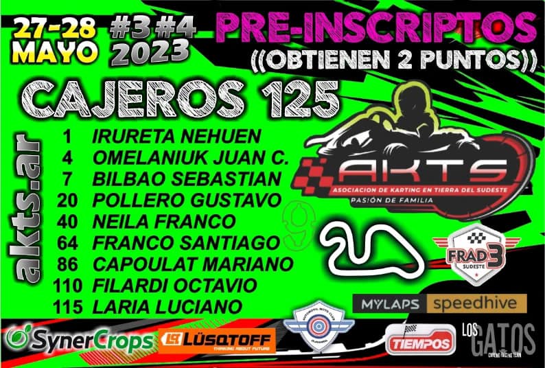 Se iba a correr este fin de semana en el kartódromo del Parque «Juan Silva» de Rauch, con la presencia de Agustín Acuña y Luciano Larias en sus respectivas categorías en el marco de la fecha 3° y 4° de la temporada 2023 de la especialidad, pero se suspendió por razones climáticas.