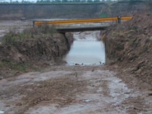 Como podrán ver en las fotos adjuntas, gran parte de la zona de la cava municipal, por donde se debería transitar en carrera, además de ser el epicentro de la P.S E en formato espejo, está bajo agua, como varios lugares de las tres restantes pruebas especiales y enlaces a recorrer para llegar y salir a las mismas.