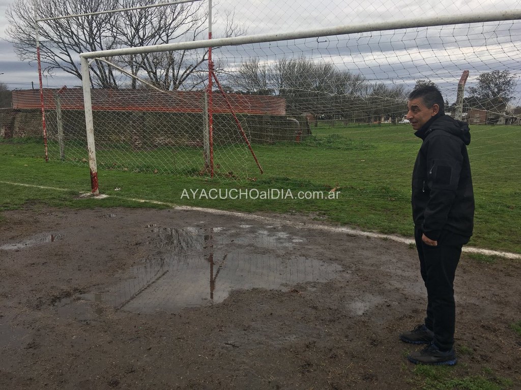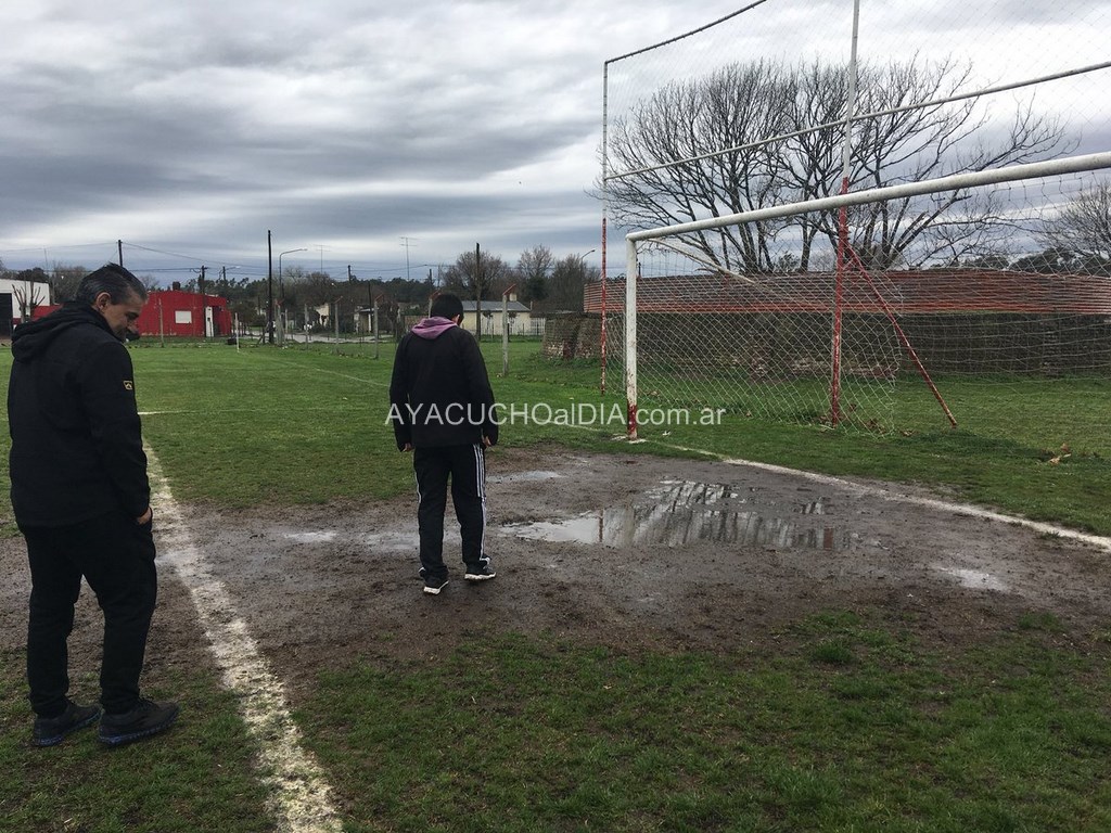 La parte más complicada era sobre el área que da espaldas al tanque del predio de la Rural, donde como se observan en las imágenes que logramos tomar desde Ayacuchoaldia.com.ar, el agua acumulada hacía imposible que se jugara.