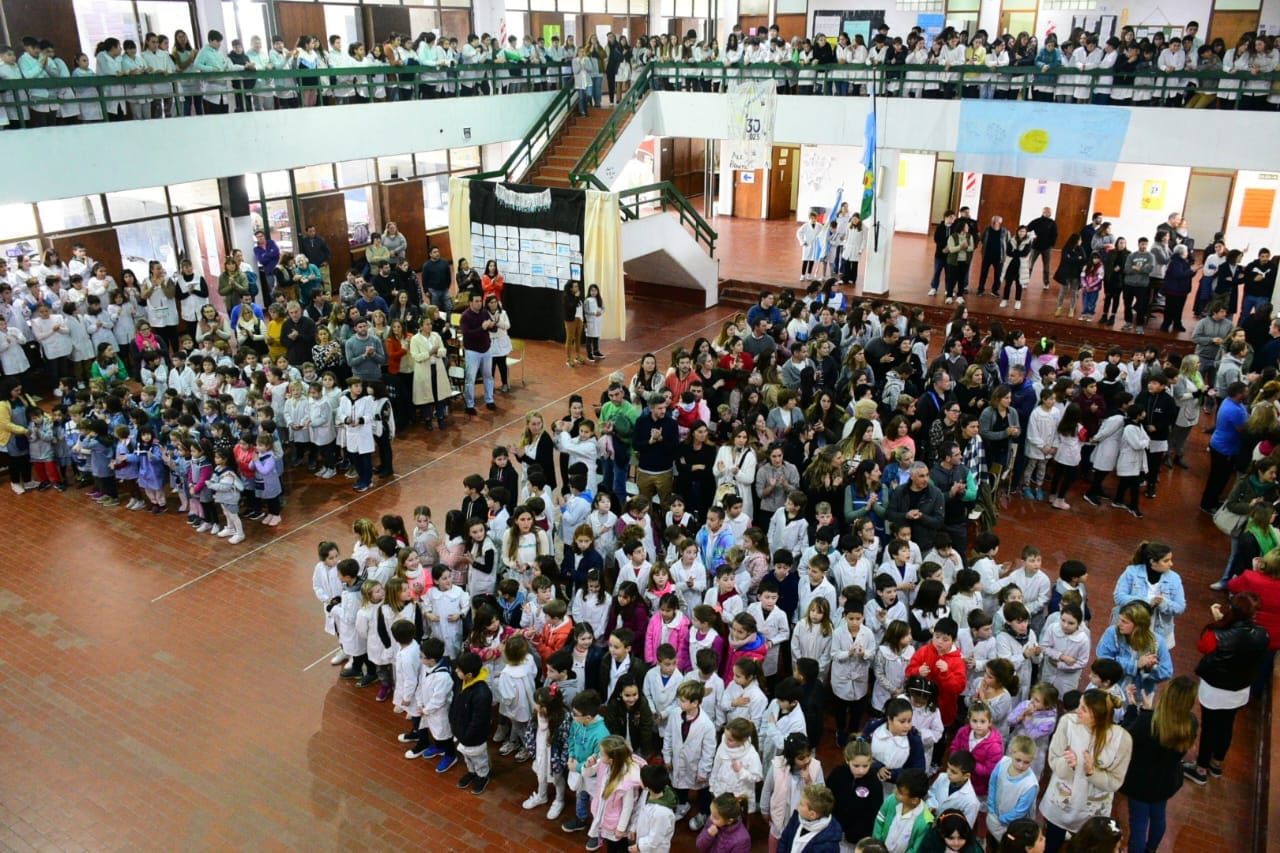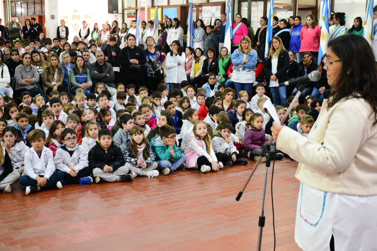 Luego del ingreso de las Banderas de Ceremonias como también entonar el Himno Nacional Argentino y Aurora, interpretado por la Banda Municipal de Música, hizo referencia a la fecha Directora del establecimiento, Roxana Álvarez; en tanto que las docentes Belén Moris y Milagros Vila dieron lectura a unas palabras en donde se valoriza no solo a nuestra Bandera Nacional sino al rol que cumplió su creador.