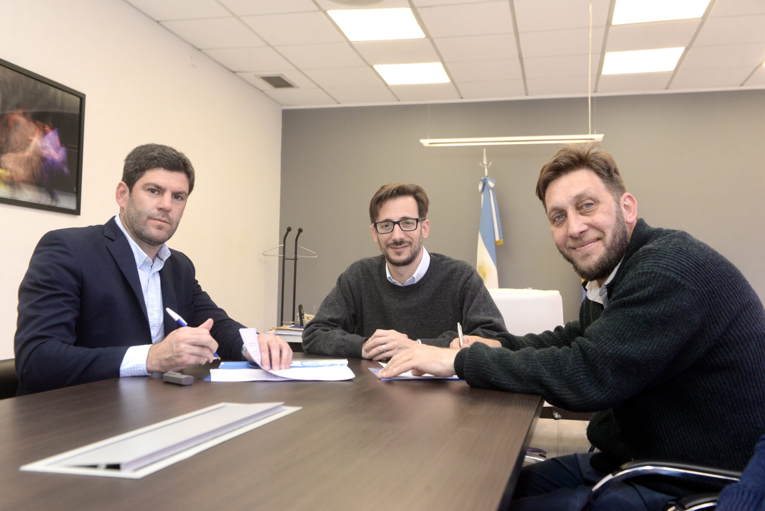 El ministro de Hábitat y Desarrollo Urbano de la Provincia, Agustín Simone, junto al administrador general del Instituto de la Vivienda, Diego Menéndez, firmó un nuevo convenio con el intendente de Ayacucho, Emilio Cordonnier, para la construcción de 66 viviendas para el distrito.