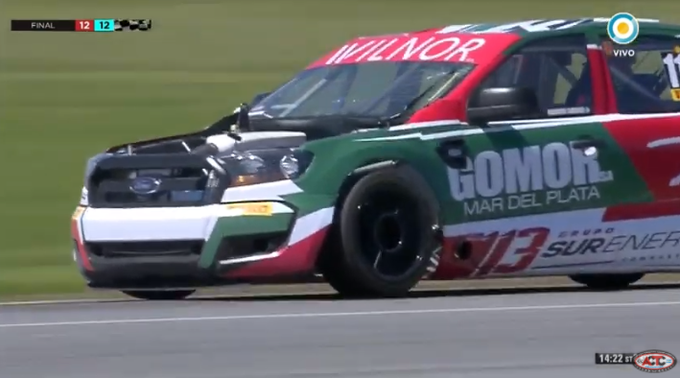 Se puso en marcha la final del domingo con Rossi en la posición de privilegio. Mientras que atrás Canapino se tocó con Urcera y el sureño se despistó. Por su parte también sufrió una salida de pista Julián Santero. Ambos pilotos debieron abandonar.
