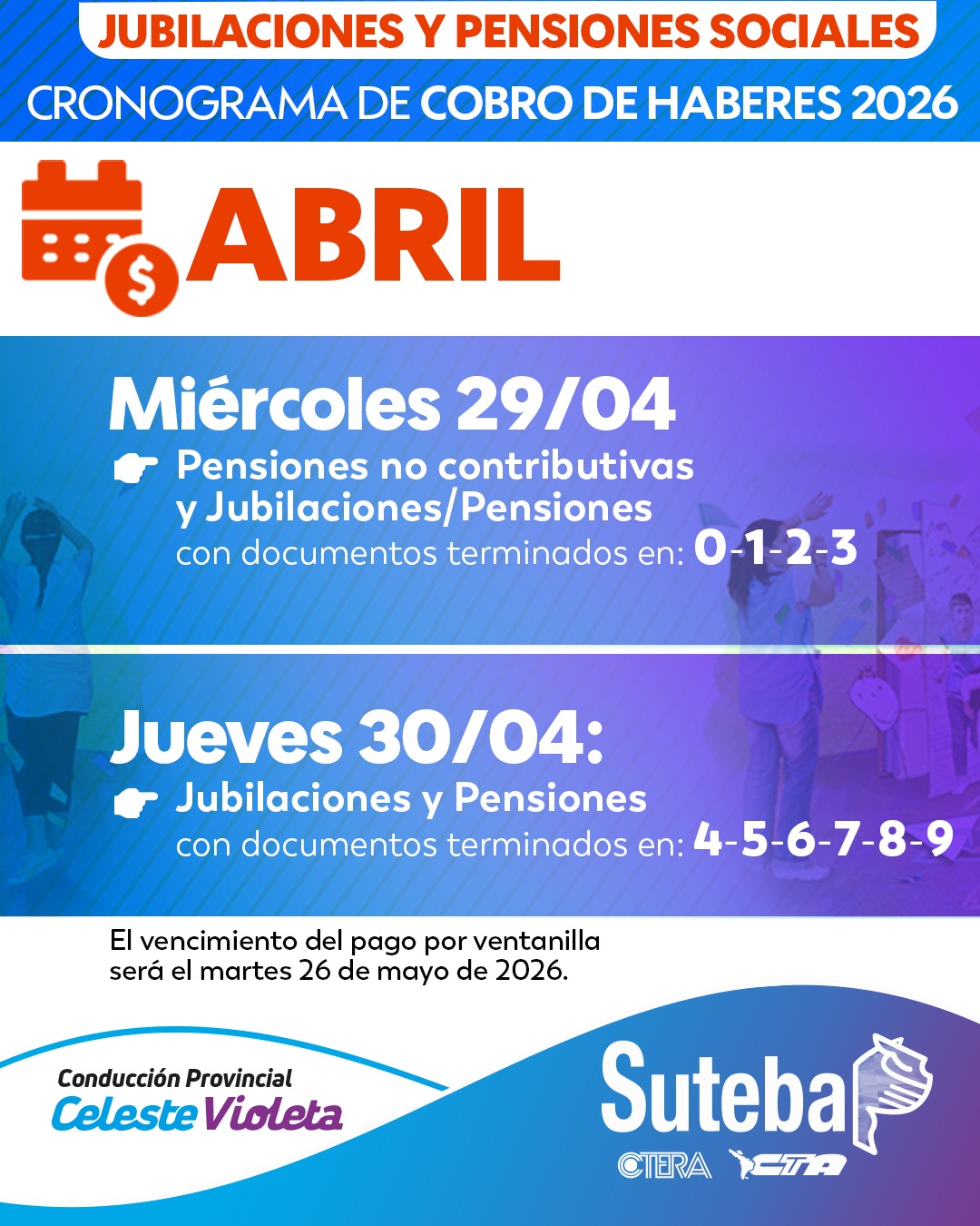 SUTEBA confirmó calendario de Pagos para Jubilaciones y Pensiones de abril 2026 16 abril, 2026 Pablo Tusq destacados, Locales, locales DIA 0 X
