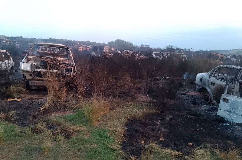 Además la explosión de un tubo de gnc de uno de los coches hizo que el fuego se propagara hacia un lote de enfrente quemando unas 4 hectáreas de pastos naturales.
