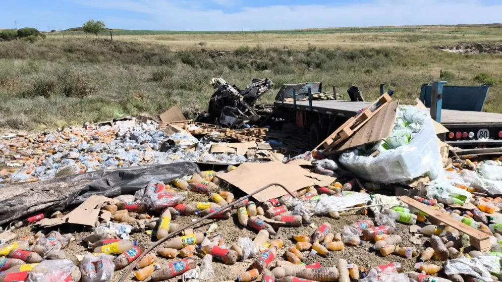 «Le pegó 2 veces» dijo uno de los presentes en el lugar a este Portal de Noticias, para después, «el camión volcar en la banquina y perder la carga».
