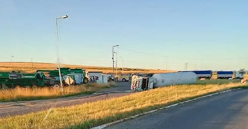 Este viernes, alrededor de las 4 de la madrugada, se produjo el vuelco de un camión Fiat Iveco que transportaba gas butano de la empresa Dolores Gas en la rotonda de La Vasconia.