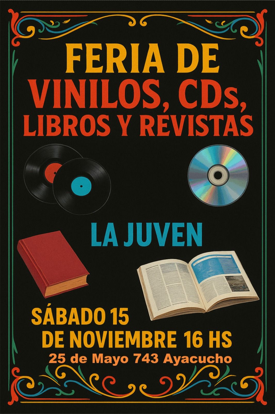 El Club Juventud Unidad realizará este Sábado 15 de Noviembre desde las 16 horas, un evento en donde además de buena música, habrá libros, vinilos y revistas para recorrer. Desde la organización invitan a llevarse el mate y disfrutar de una muy linda tarde.