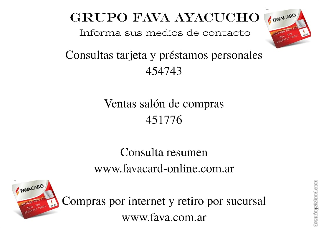 Tarjeta Favacard informa a sus clientes, que el horario de atención de sus oficinas en Ayacucho es de lunes a viernes de 8 a 14.30 hs, para el cuidado de la pandemia.