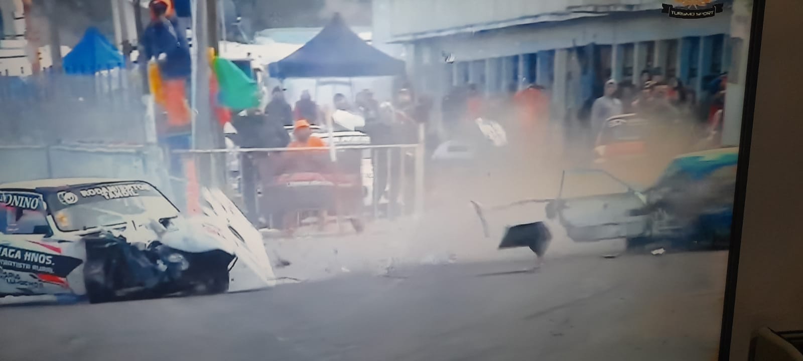 Un insólito y espectacular accidente asustó a todos durante la presentacion de la categoría Turismo Sport 1850 en Mar del Plata por el golpe entre Christian Pineda y Francisco Ochoa.