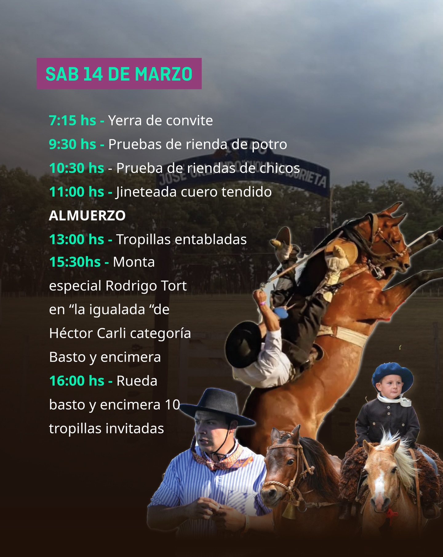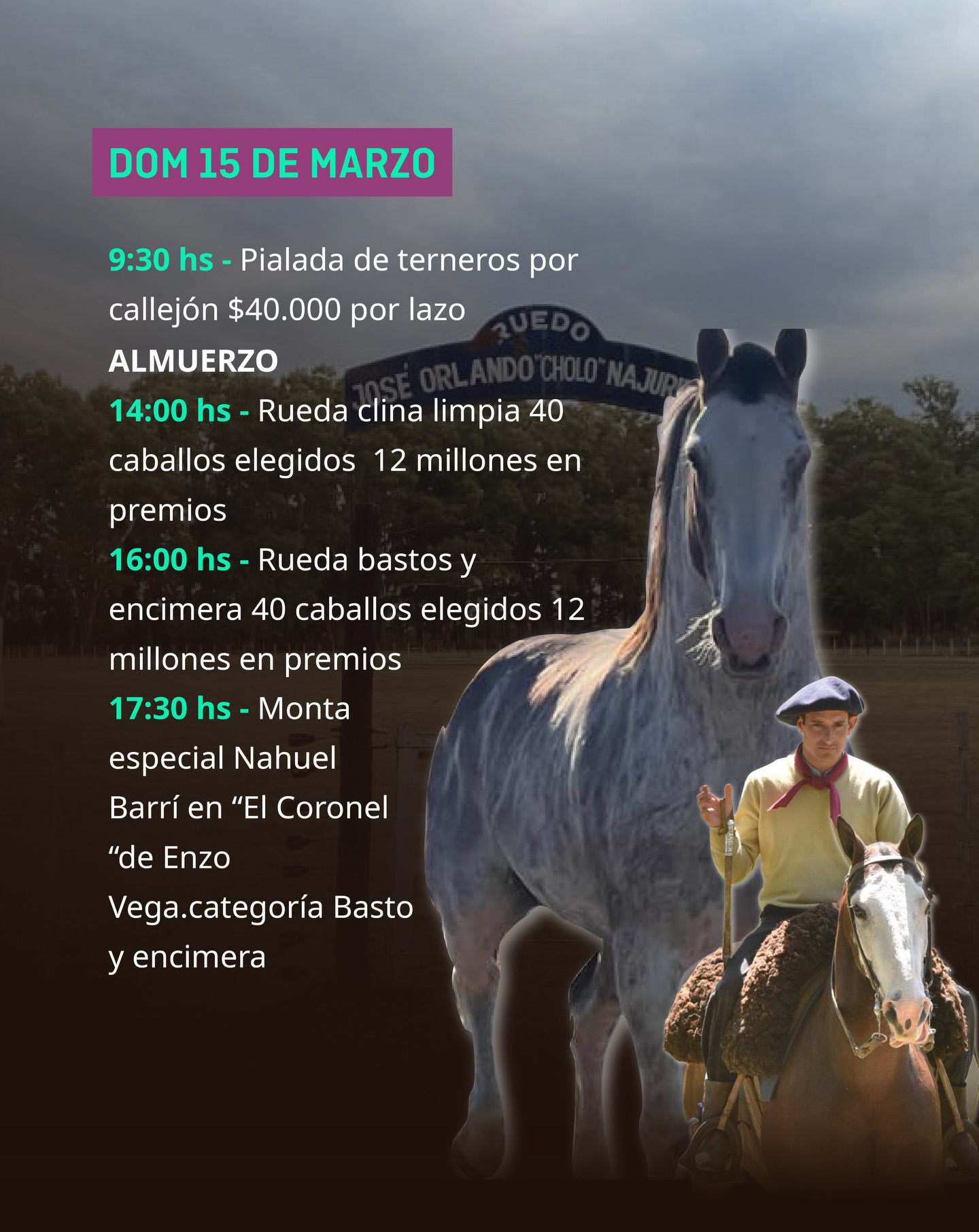 Aquí en las imágenes todo el detalle, destacando que el domingo, alrededor de las 17.30 horas se producirá la monta especial de Nahuel Barri en “El Coronel” de Enzo Vega, el caballo más destacado del momento a nivel nacional: