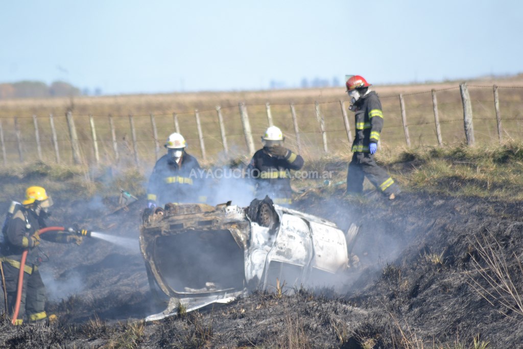 Ayacuchoaldia.com.ar estuvo en el lugar del hecho donde debemos agregar que incluso tomó fuego una importante porción de pastos de banquina, por lo que Bomberos debió recurrir a una segunda unidad de asistencia, además de su propia ambulancia.