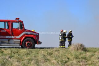 En segundo lugar el incendio de pastizales de la banquina en una proporción de 200 metros lineales. Una vez asegurada la escena se procedió a la extinción de los focos igneos y al enfriamiento de las zonas afectadas, finalizando el servicio a las 17:00 hs.