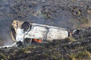 Dentro del auto Bomberos encontró una persona calcinada pero que no pudo reconocerse su identidad como tampoco datos que hicieran saber más desde dónde provenía. Sobre el auto, intentamos desde nuestro portal acercarnos lo más posible para poder precisar con detalle pero realmente fue imposible. Sí, aparentemente, se trataba de un auto de porte menor y que logramos divisar a metros de allí, entre los pastos incendiándose, partes de la unidad que eran de color verde.