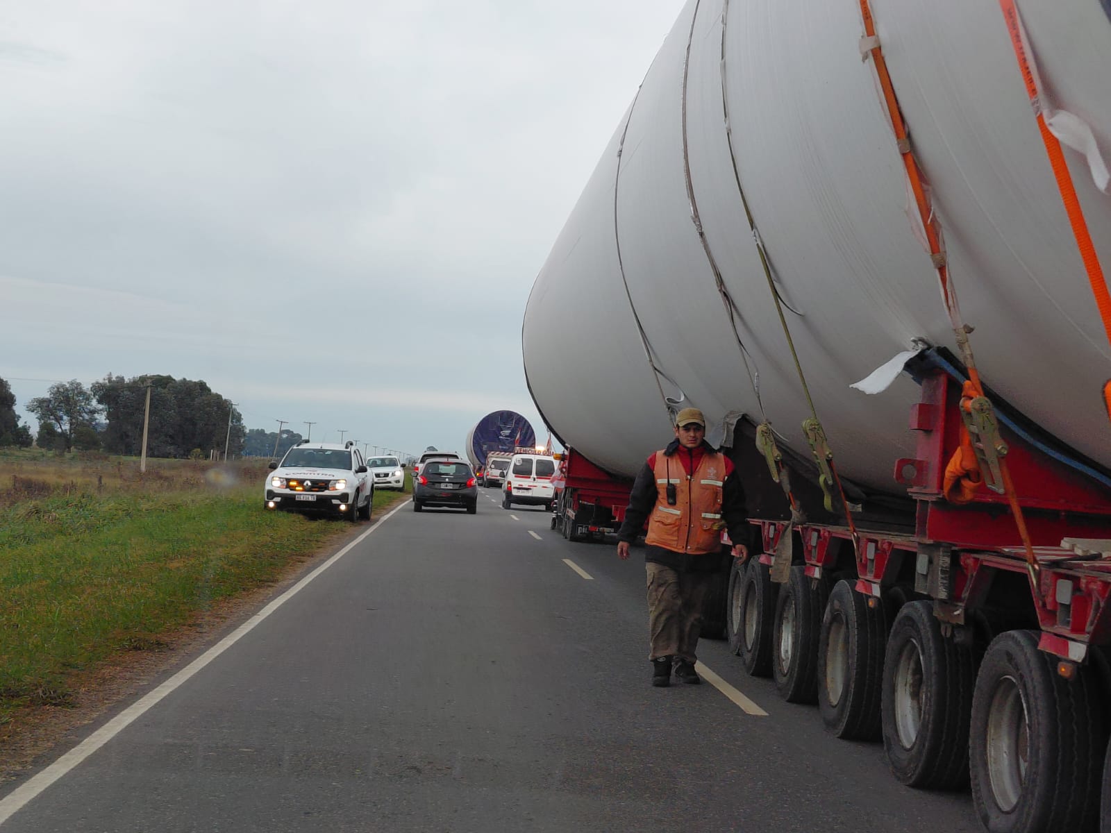 El despliegue era importante y por momentos interrumpió el transito en algunas de las manos de ida o de vuelta, en el sentido de Ayacucho a Tandil. Según lectores, sería para un parque eolico en Olavarría, como se hizo hace tiempo en la ciudad serrana.
