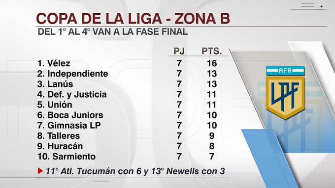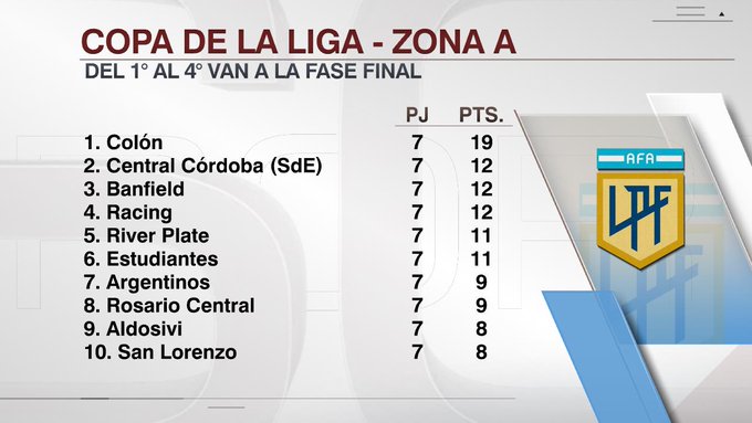 Tras siete fechas, así quedaron las posiciones en la Copa de la Liga Profesional