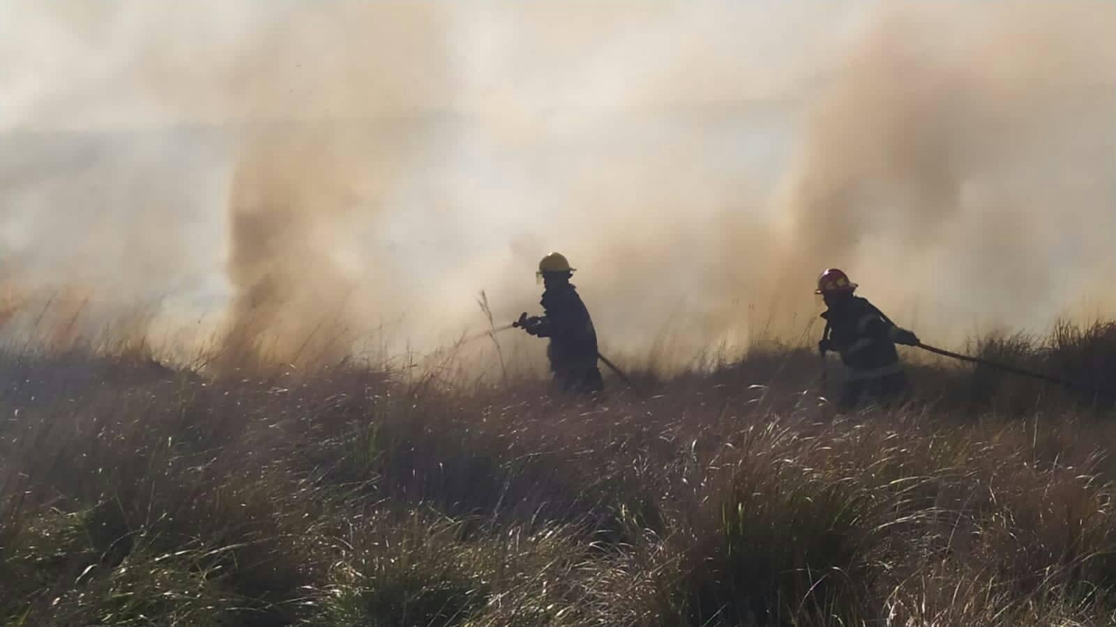 Arribados al mismo se constató que se trataba de 2 focos de incendios declarados de pastizales de la banquina y parte de campos.