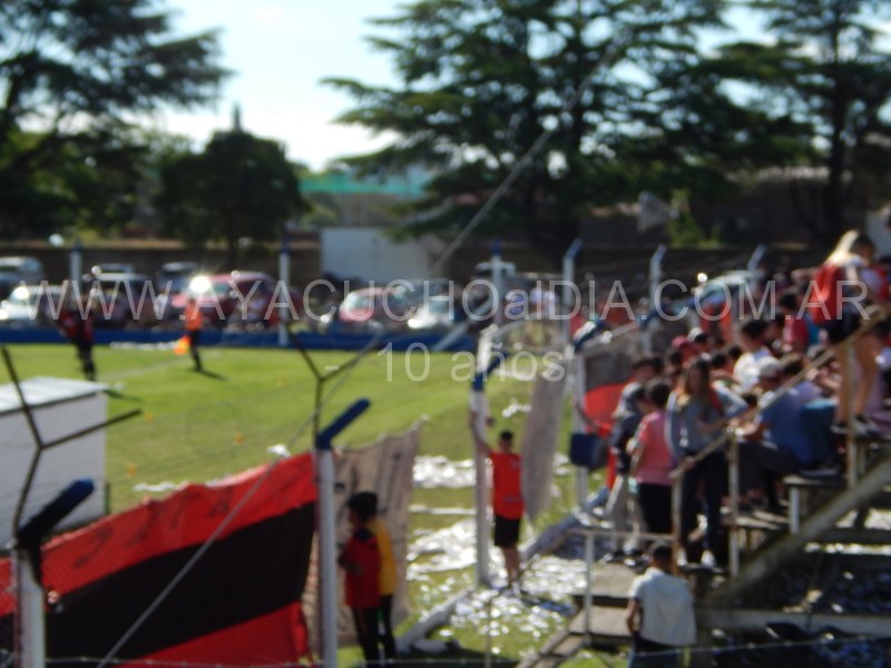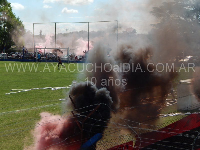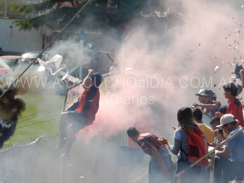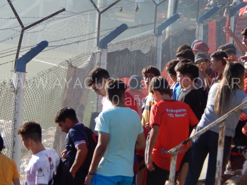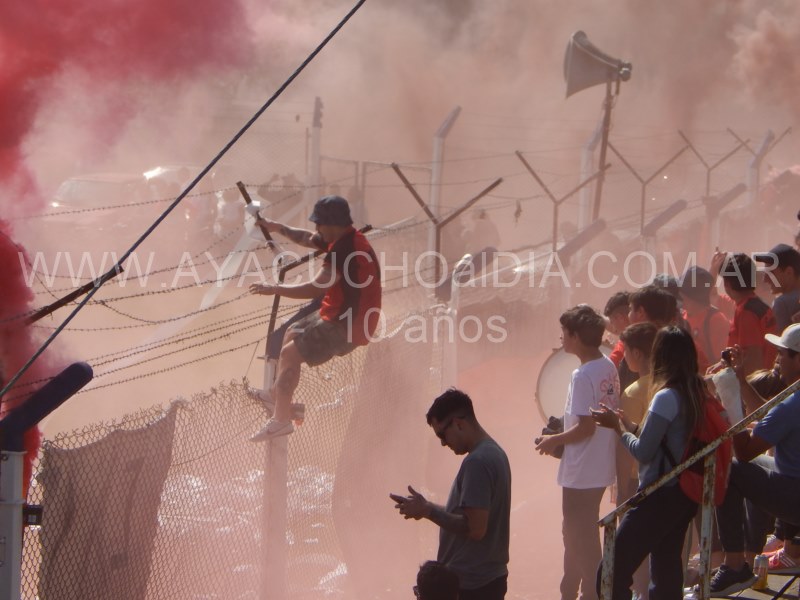 La parcialidad de Atlético se instaló en «la de cemento», mientras que detrás del arco de las vías y en «la de madera» la hinchada rojinegra desplegó bombas de colores negro y rojo y miles de papelitos, que desde hace tiempo no se veía.