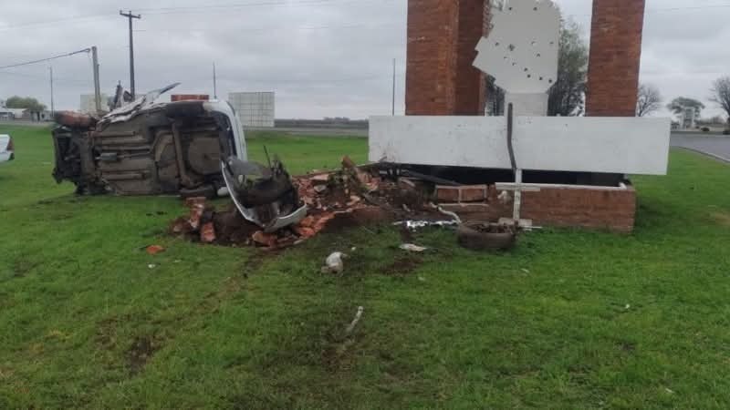 En el auto viajaban dos hombres, ambos de 28 años, oriundos de Fortín Olavarría, embistió el arco de entrada a la ciudad de América, distrito de Rivadavia.