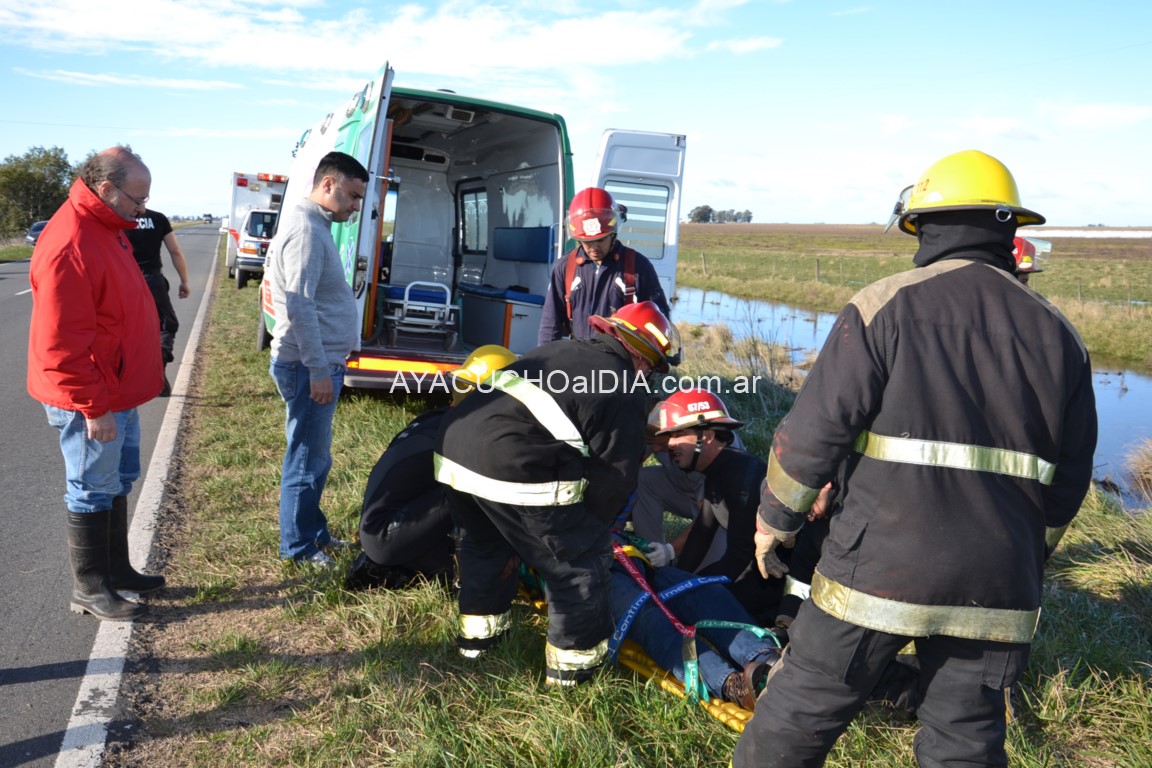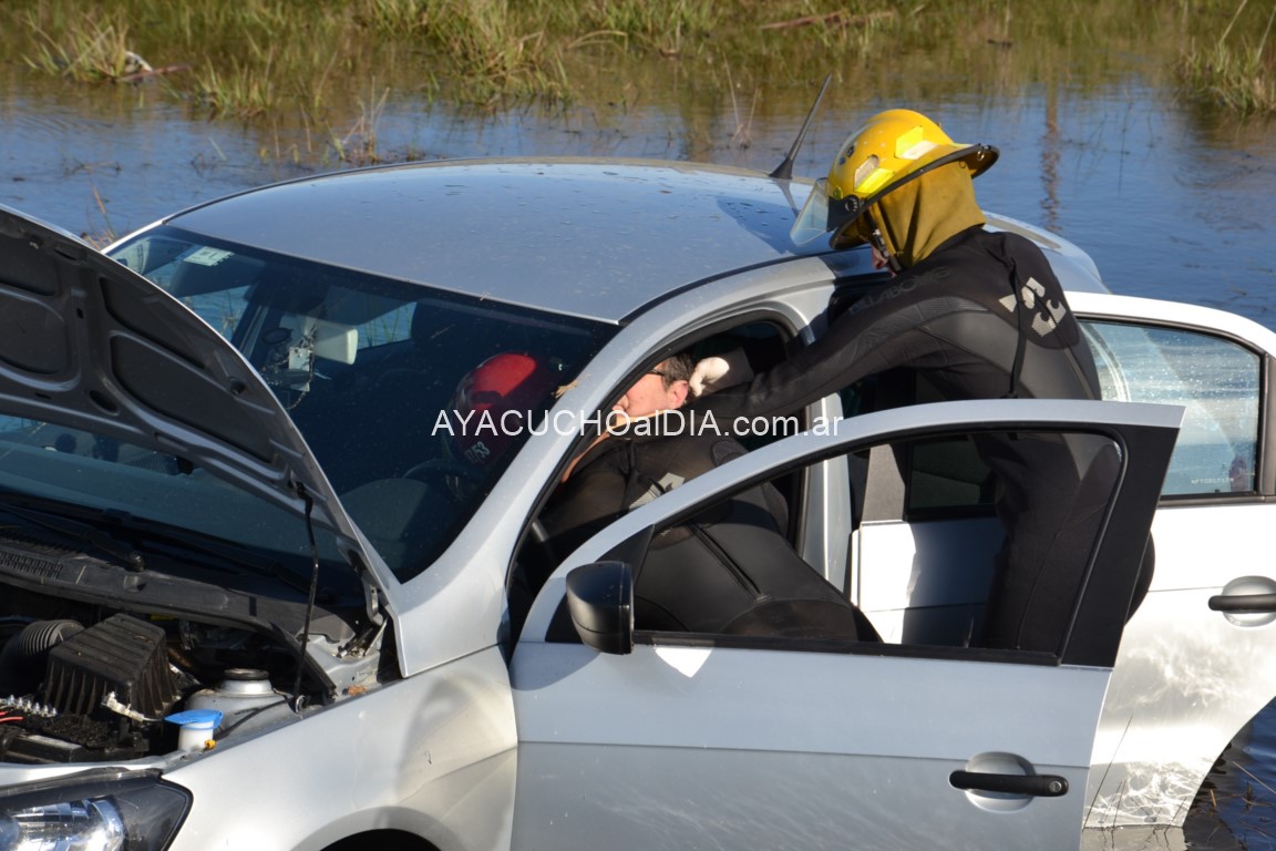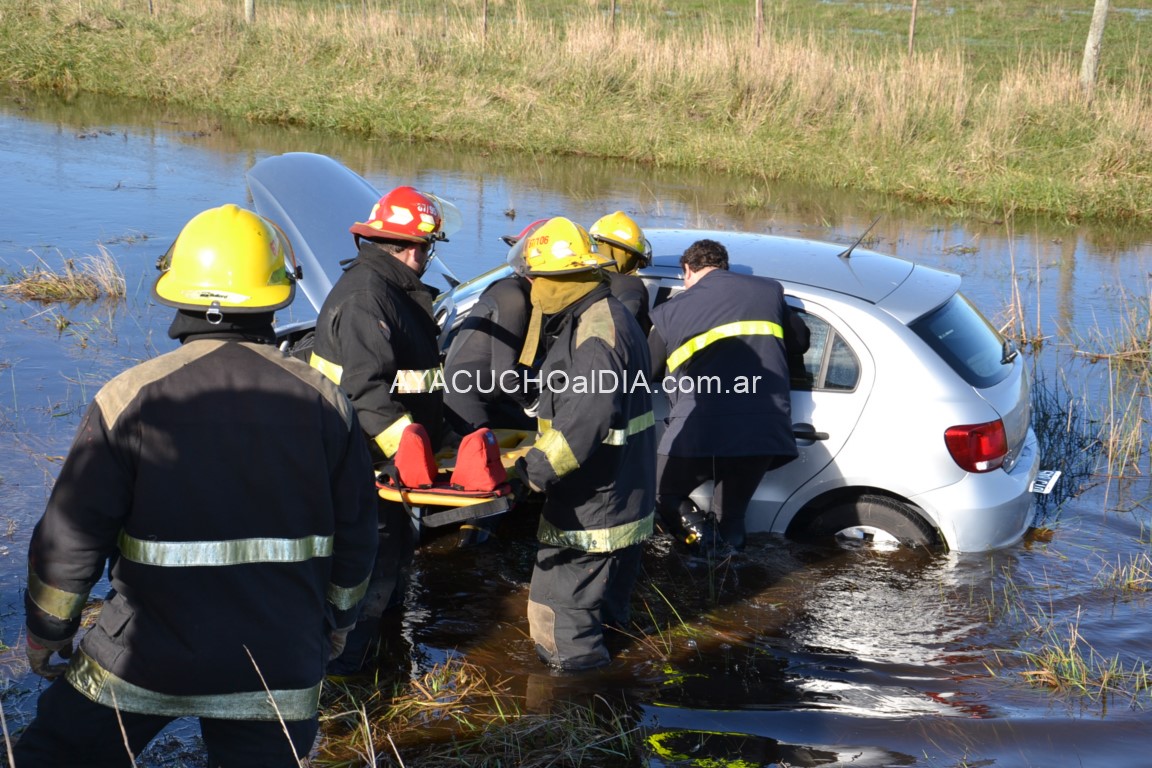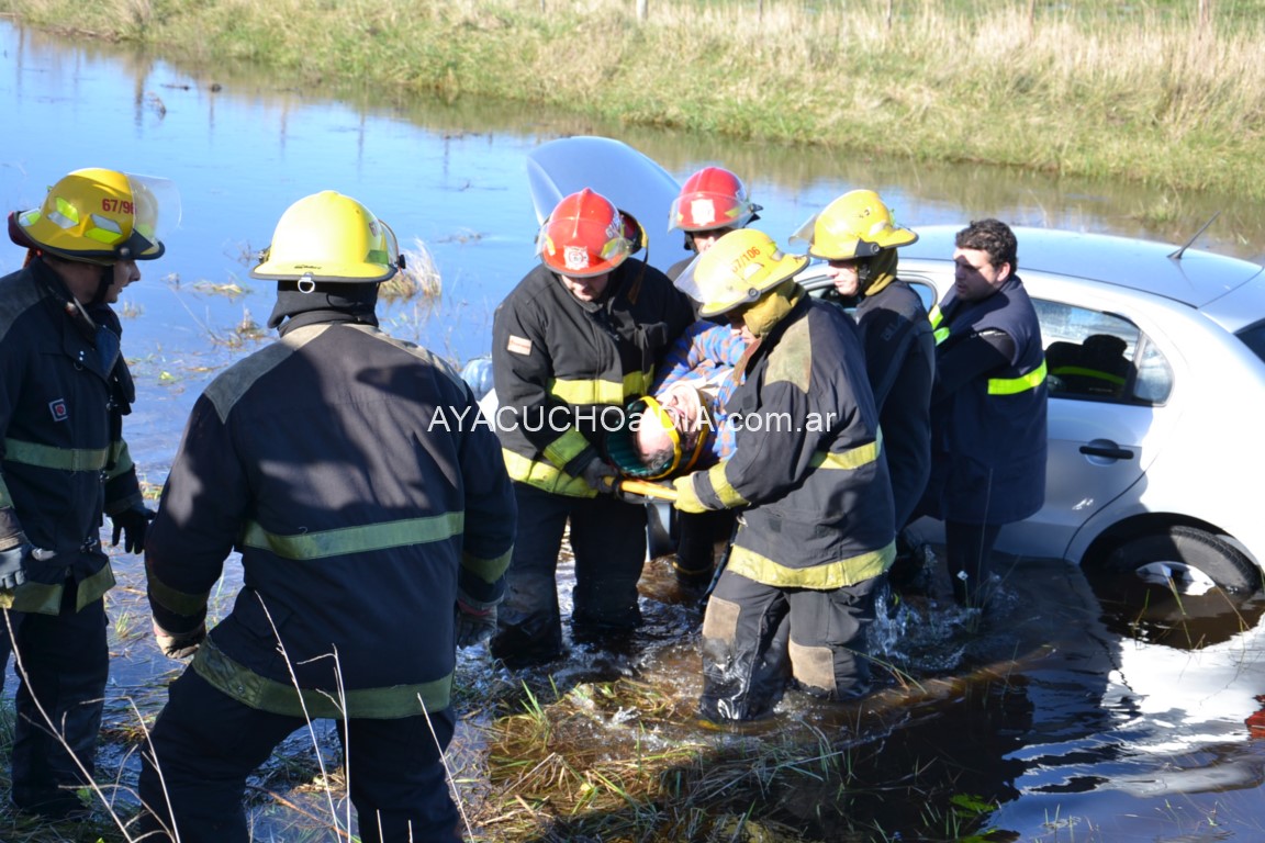 El conductor del Gol Trend que era el único ocupante, tuvo que ser rescatado por Bomberos Voluntarios de Ayacucho que acudieron al lugar a través del llamado de alarma general. Ayacuchoaldia.com.ar estuvo en el lugar del siniestro una vez arribado los Bomberos.