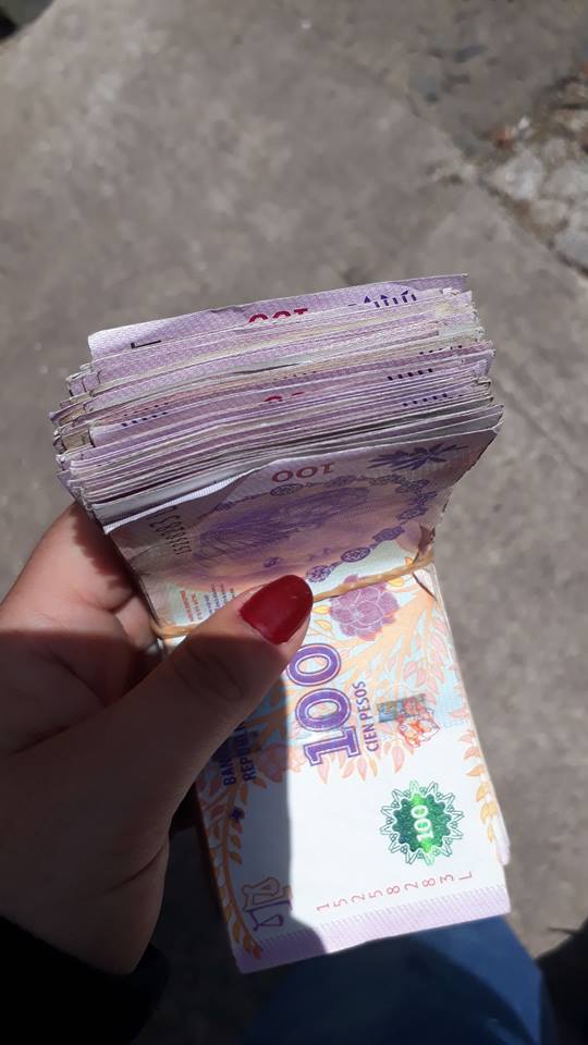En las redes sociales, Mili escribió; «Vengo de una flia que me dio una buena educación y aprendí que lo que no es mío, no me lo tengo que quedar..Es por eso que hoy al encontrarme $ 10.000.- en la vereda, los devolví a sus respectivos dueños. Tal vez no tendría que pensar así, pero como están las cosas hoy en día, sé que si yo pierdo algo NADIE me lo va a devolver!. Y estamos hablando de $ 10.000.- no 100 o 200…Mínimo, me podrían haber dado una recompensa, más que un simple «gracias», porque si pasaba otro, se los guardaba en el bolsillo y no veían más esa plata