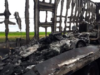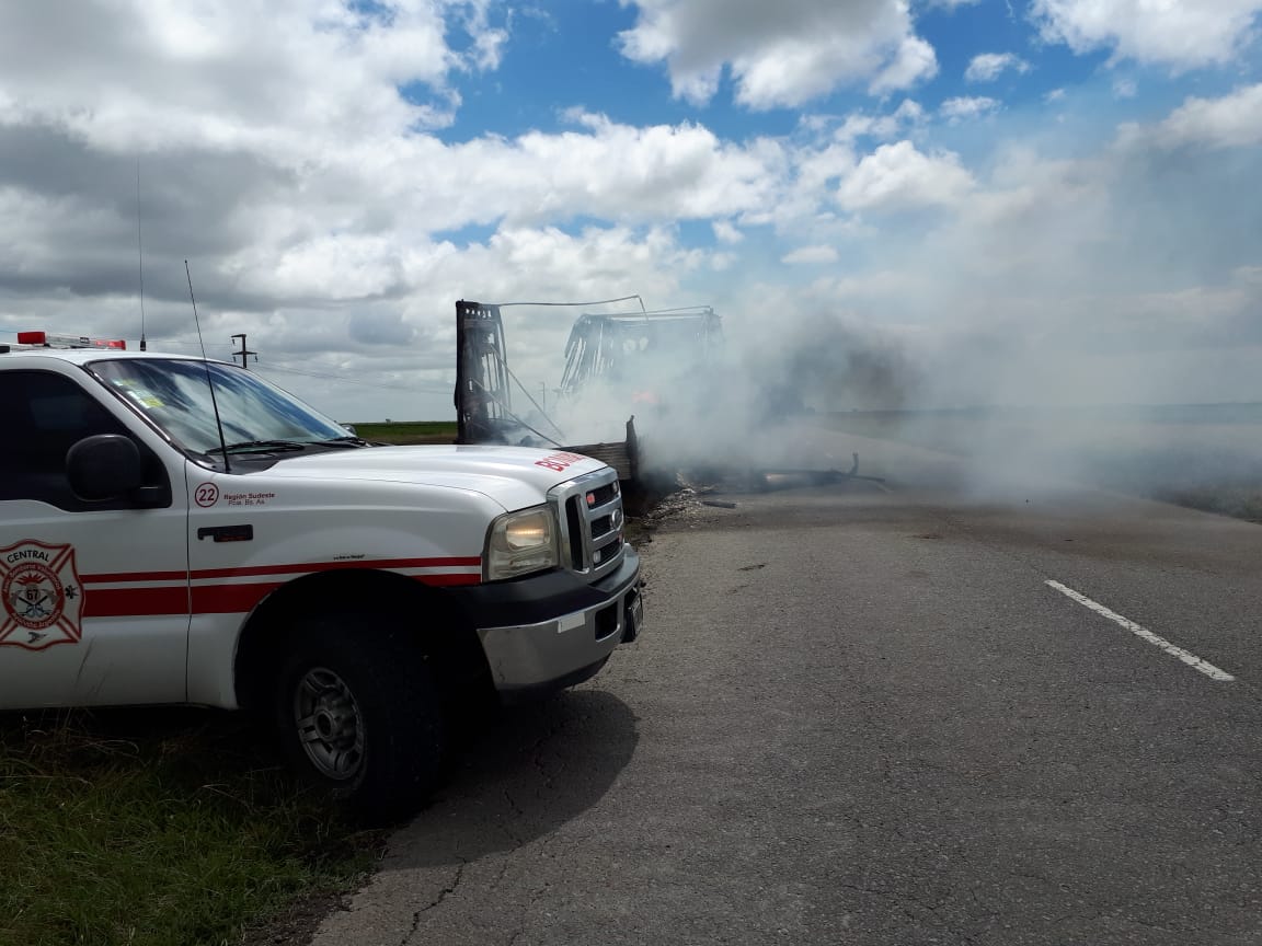 Este domingo 17 de enero luego del mediodía se produjo un incendio de un camión en la Ruta 50 en dirección a la ciudad de Rauch.