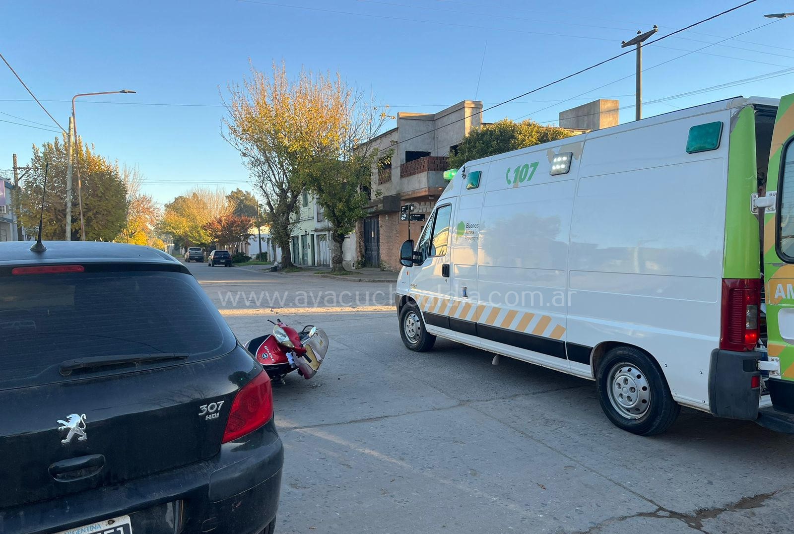 Ayacuchoaldia.com.ar estuvo allí y por lo que pudimos observar, el menor presentaba algún raspón en la zona de rostro; pero como no portaba casco al momento del accidente, fue llevado al Hospital Municipal para que se le practicaran estudios de rigor. Su mamá resultó ilesa como también el conductor del auto.