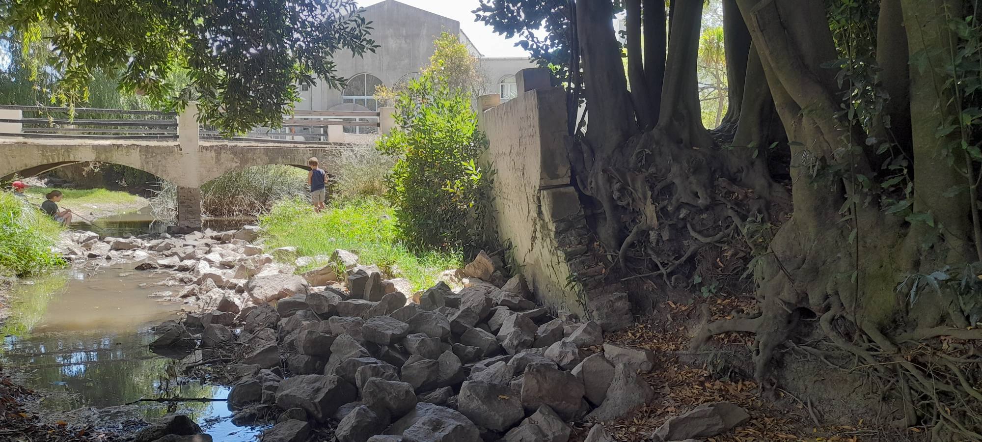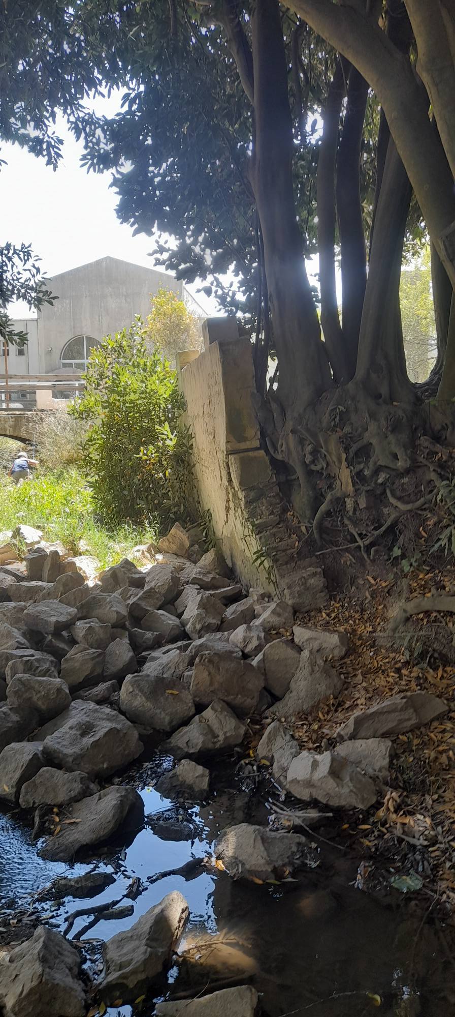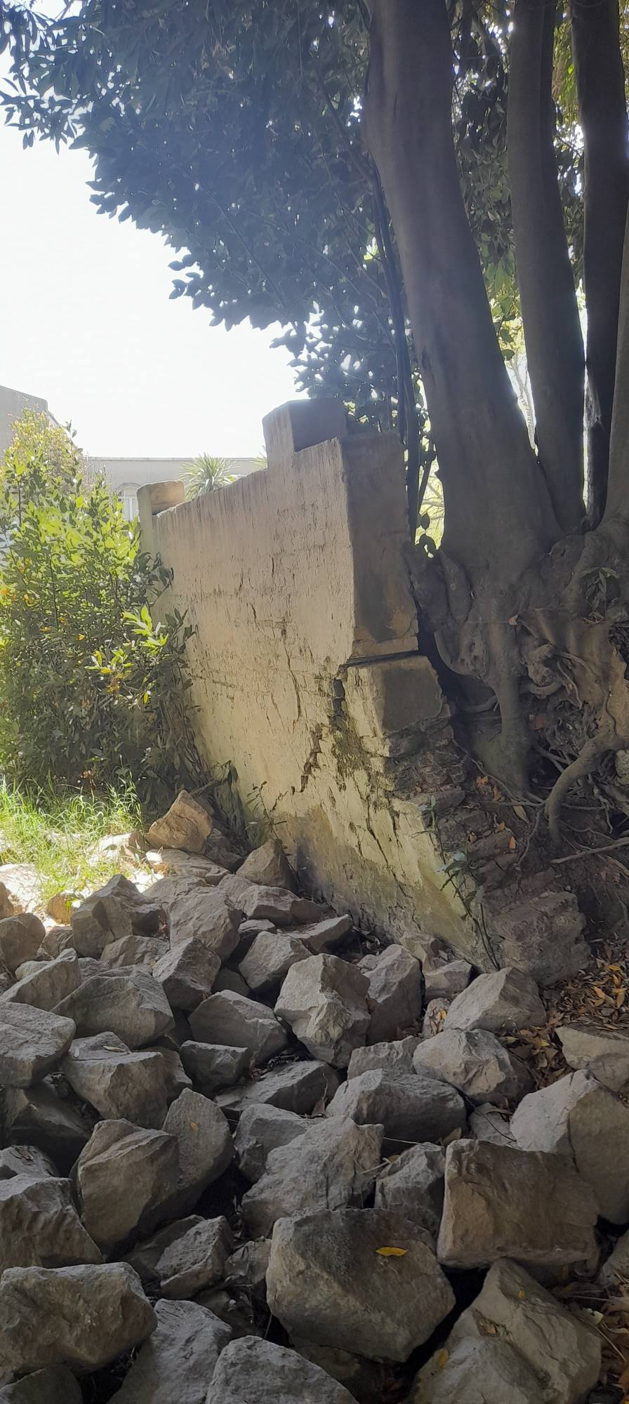Dicho paredón de contención se haya visto vencido posiblemente por la presencia de las raíces del árbol más cercano y por lo tanto requiere un inmediato accionar, tanto del Club como del Municipio, a cargo de la infraestructura del Centro Recreativo Comunal.