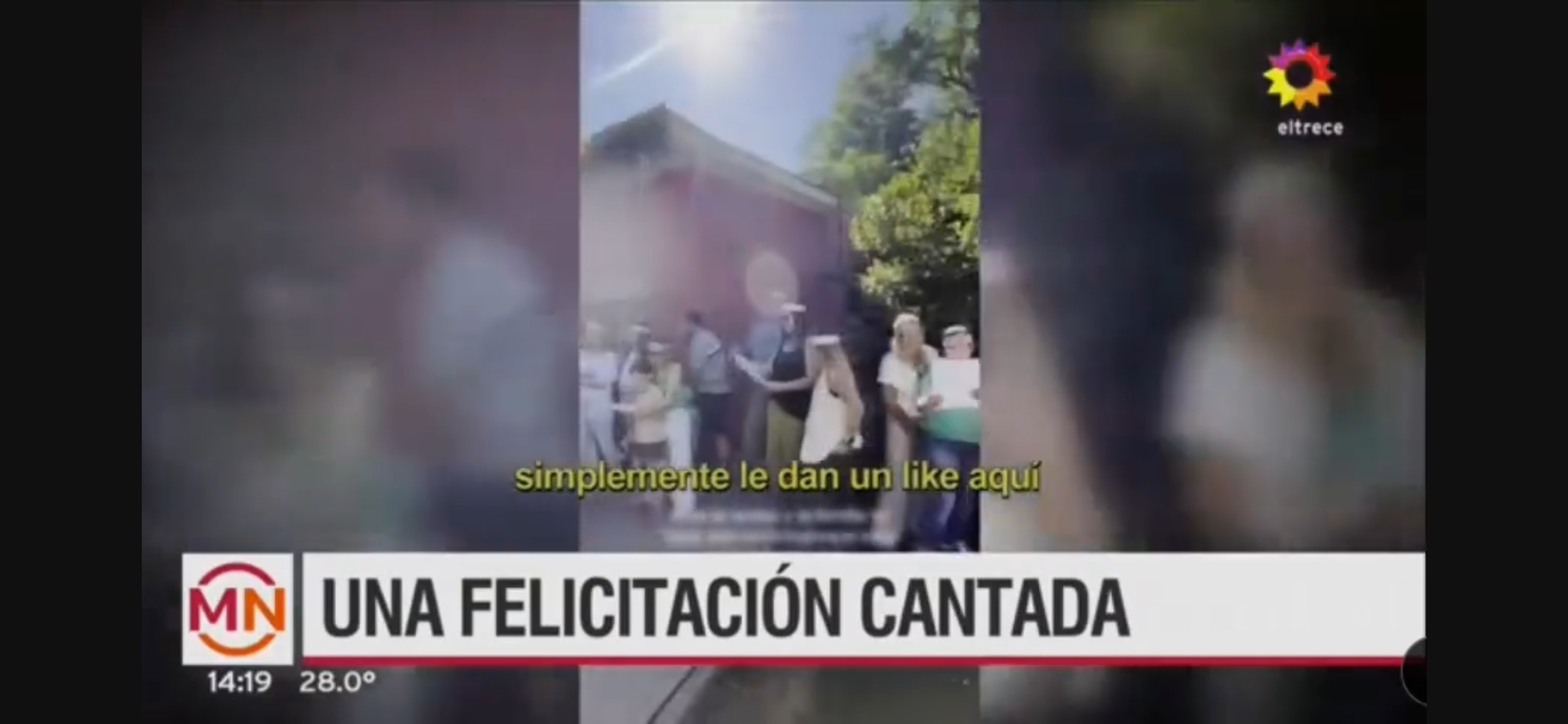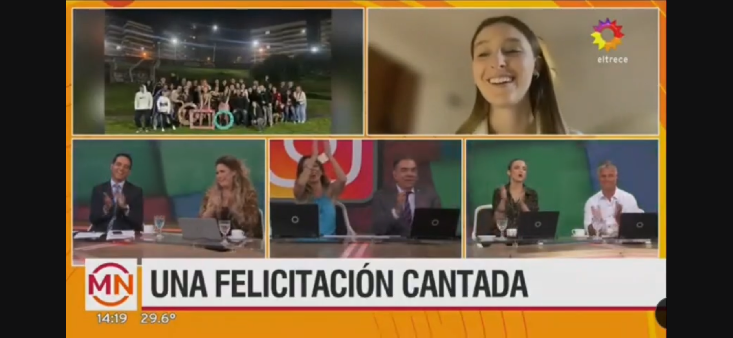 La joven ayacuchense Manuela Zeberio se recibió de Licenciada en Relaciones Institucionales y luego de que su familia le regalara una canción cantada, dicho video llegó a la TV grande por lo que le hicieron una entrevista en Canal 13 este lunes al mediodía.