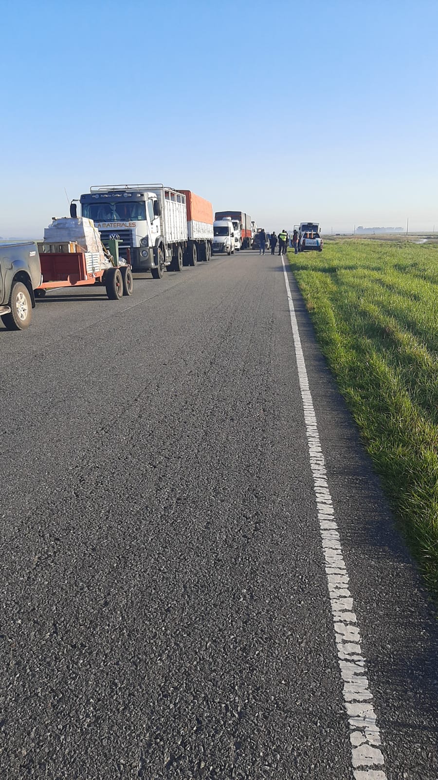 Los conductores del camión no presentan lesiones graves. Se hizo presente en el lugar personal de la Policial Científica de Dolores, quienes realizaron las pericias accidentológicas.