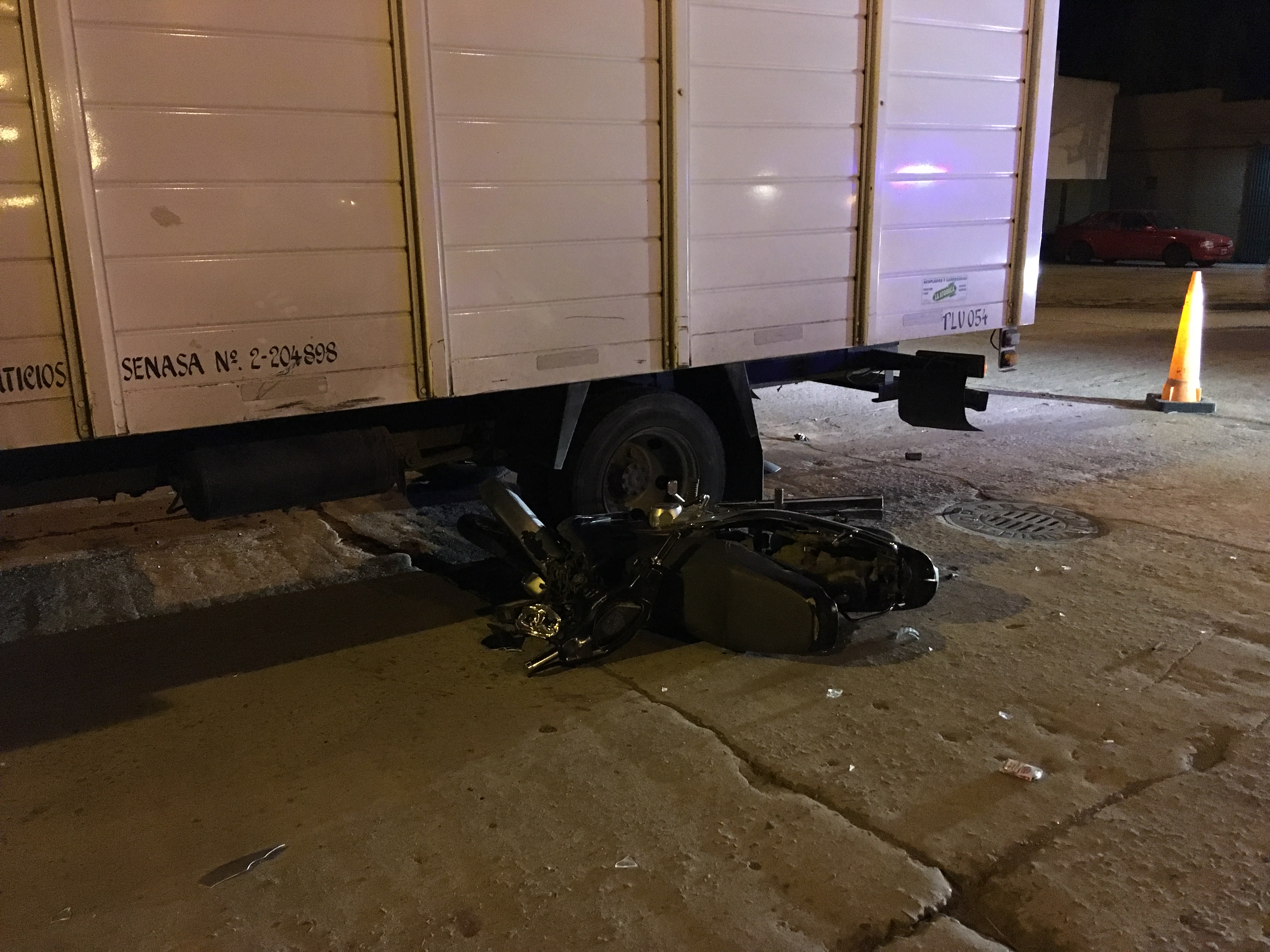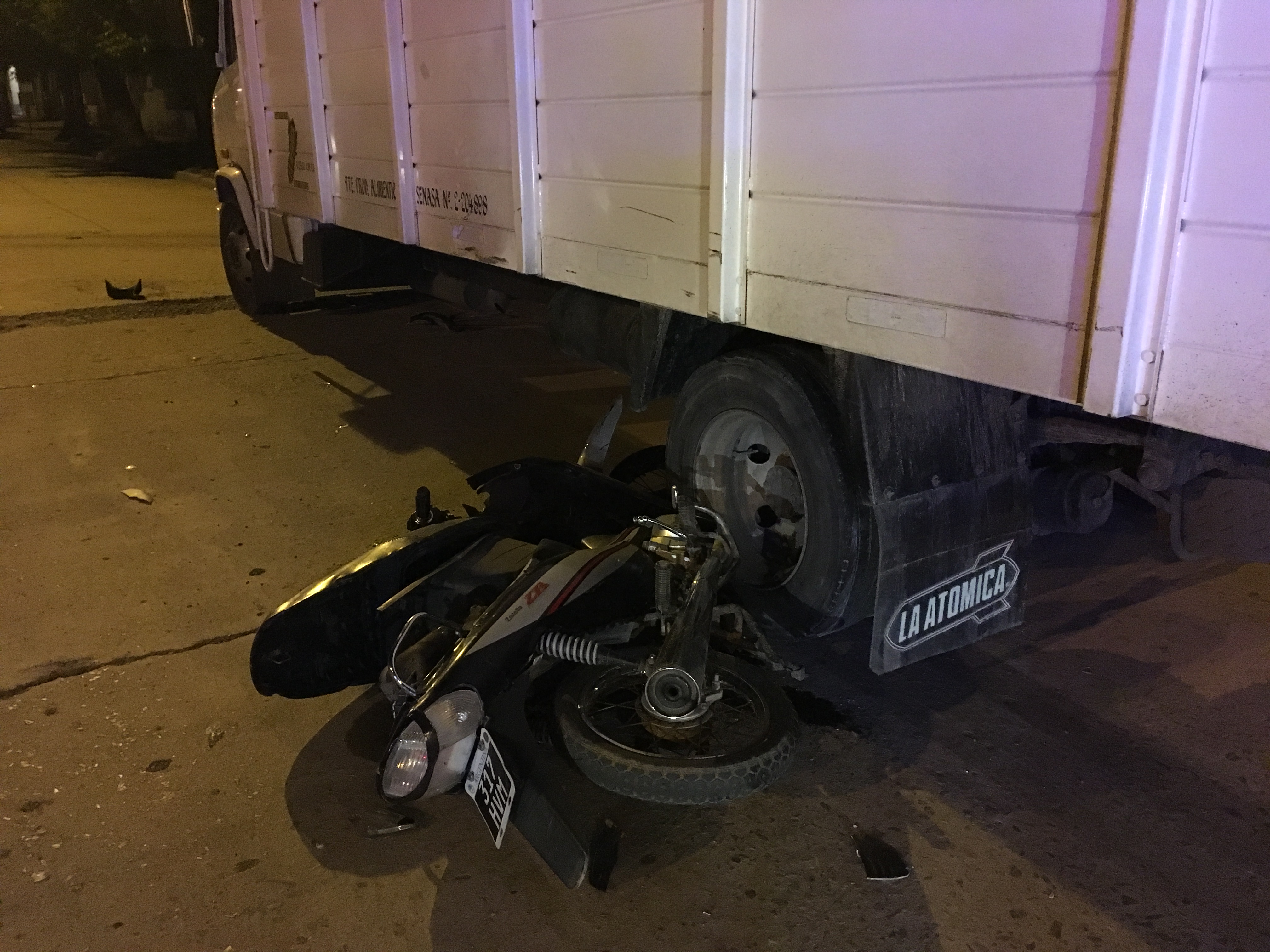 Como se observa en las imágenes, la moto terminó debajo de la duales del camión.