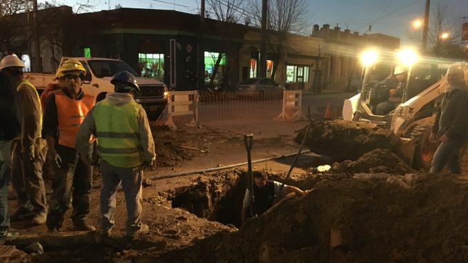 Si bien inicialmente se hablaba de una rotura que se había producido en momentos que la empresa Plantel S.A. desarrollaba tareas de recambio de cañerías de agua potable, luego se conoció que la rotura estaba de antaño u al descubrir el caño se aprovechó para su reparación.