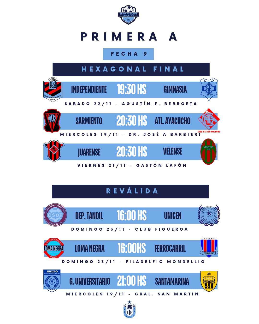 URD con sábado y domingo de definiciones / Transmite La 95.3 con su equipo 4-3-3 29 noviembre, 2025 Pablo Tusq Sin categora 0 SEMIFINALES — PRIMERA B / RESERVA A / RESERVA B Después de unos cuartos de final vibrantes, ya están definidos los cruces de semifinales en Primera B, Reserva A y Reserva B. Durante la semana se conocerán día y hora de cada partido; X