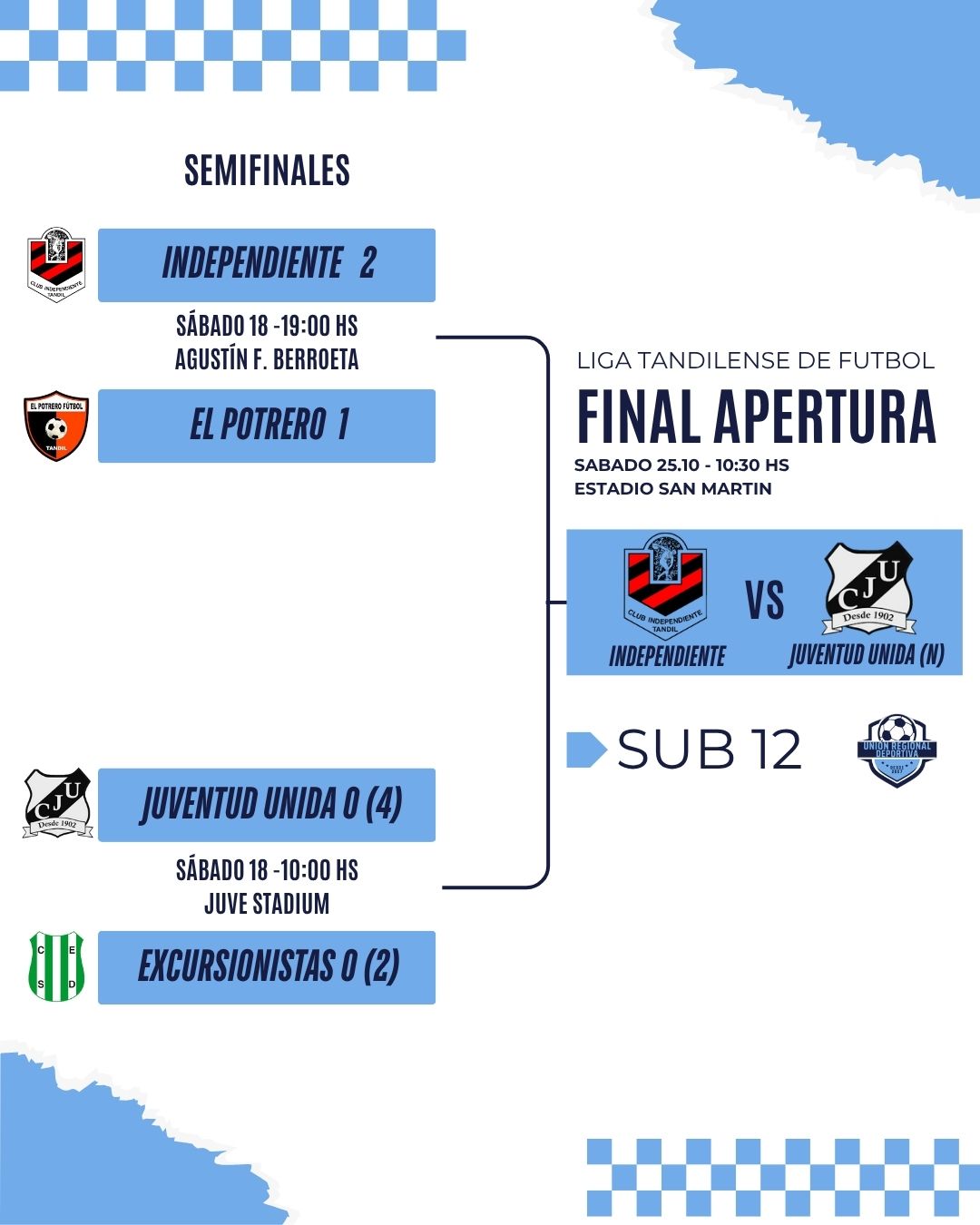 Entre sábado y domingo se jugaron casi todos los cruces de semifinales para las categorías Sub 12, Sub 14 y Sub 16. Mañana se define -en sub 16- el rival de El Potrero (Juventud Unida o San José).