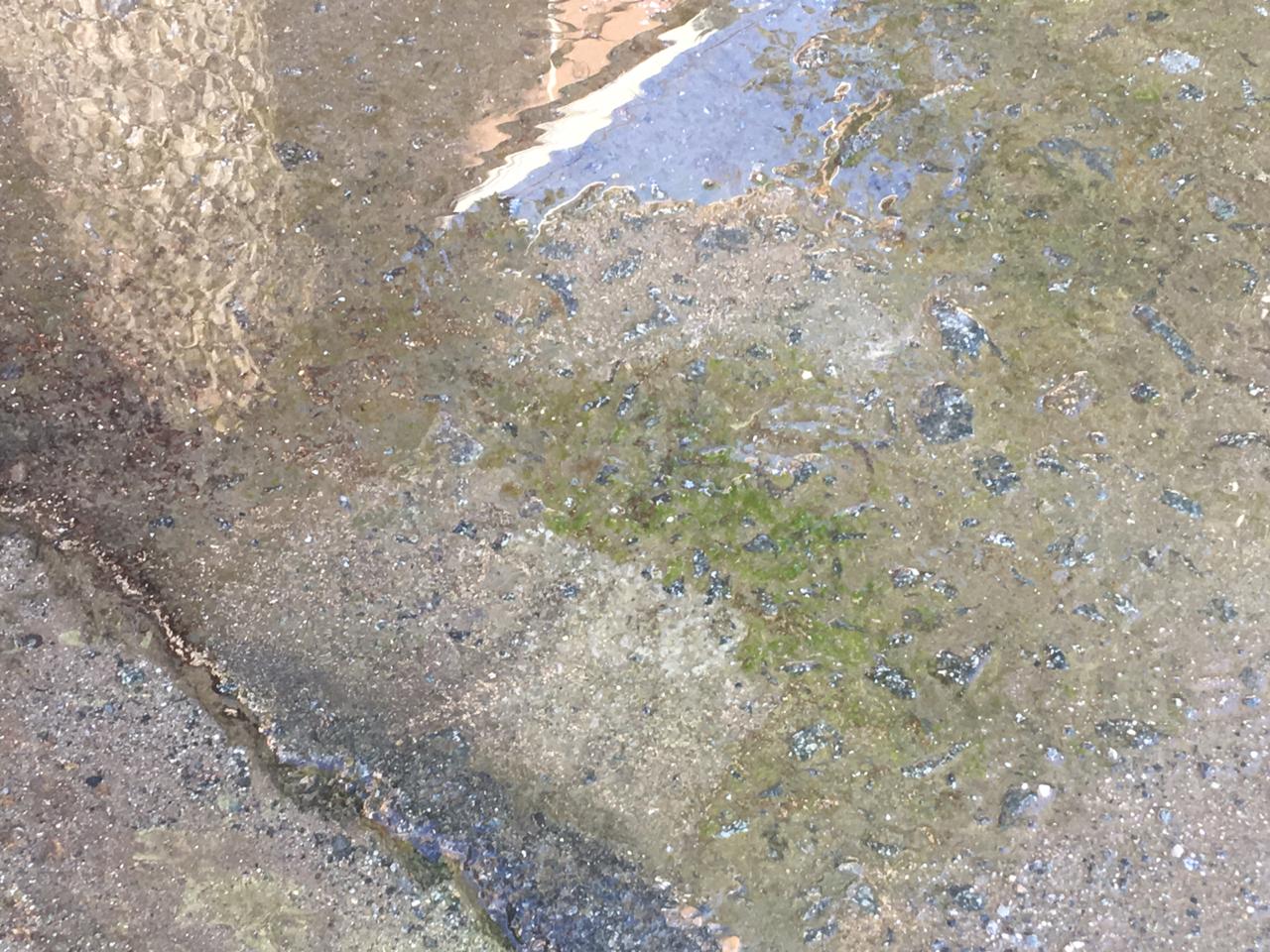 Vale señalar que este mismo inconveniente también se manifiesta en otras esquinas céntricas como lo es el caso de A. Del Valle y Alem, donde dado el tiempo que lleva con agua el asfalto, ya evidencia la acumulación del peligroso verdín.
