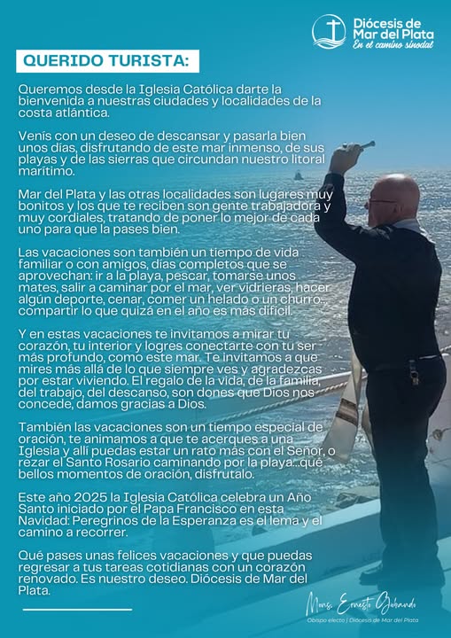 Verano 2025 – Mensaje de Monseñor Ernesto Giobando a la comunidad turística 11 enero, 2025 Pablo Tusq destacados, Zonales y Regionales 0 X