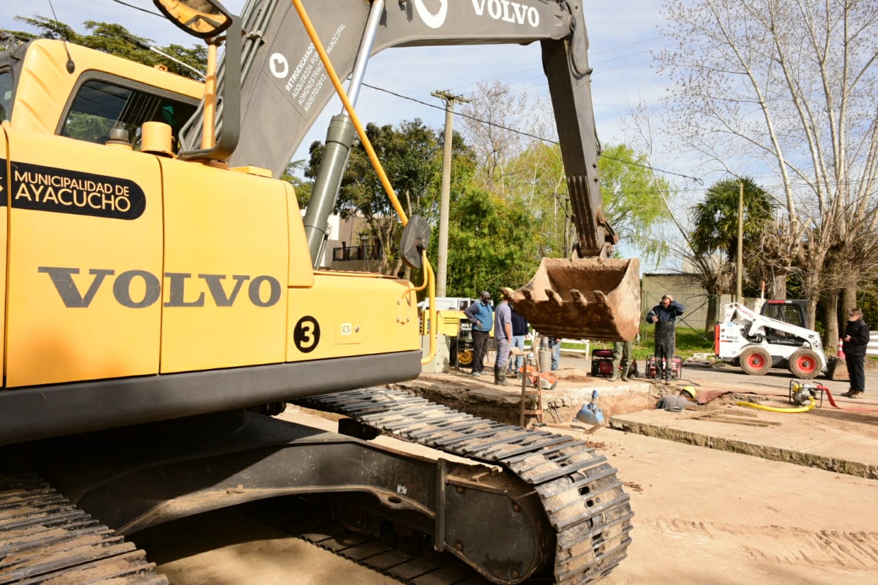 La Municipalidad de Ayacucho colabora en las tareas de empalme y vinculación de cañería principal en Avenida Miguens y calle Mitre, para abastecer a la red nueva de agua potable en nuestra ciudad.