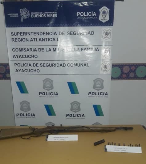 El miércoles 3 se recibió una denuncia penal por amenazas donde la víctima fue una vecina de esta localidad. En esta oportunidad se realizan las tareas de rigor para estos casos, solicitando al Magistrado de intervención del Juzgado de Paz Letrado de esta ciudad, una orden de allanamiento para el domicilio del imputado. Que con esa misma fecha, dicho Magistrado emana la orden solicitada, la cual es efectivizada por personal de la Comisaría de la Mujer y la Familia en colaboración con C.P.R. local por corresponder el domicilio del imputado a zona rural, logrando el secuestro de arma de fuego tipo Carabina cal. 22 Largo y 20 cartuchos calibre 22.