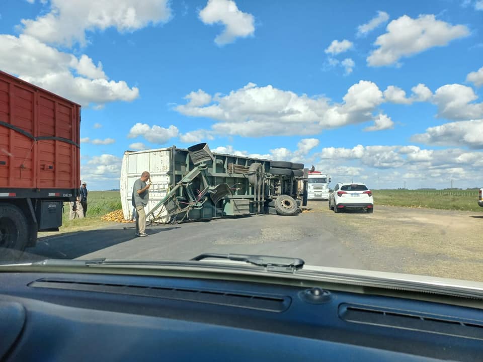 Este miércoles 5 de Abril volcó un camión que transportaba maíz, en Ruta 50 en cercanías del partido de Rauch.