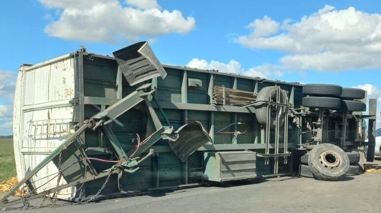 Este miércoles 5 de Abril volcó un camión que transportaba maíz, en Ruta 50 en cercanías del partido de Rauch.
