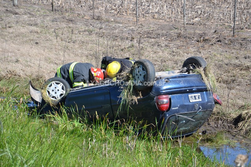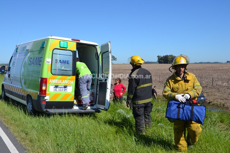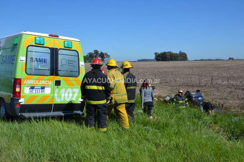 Bomberos Voluntarios trabajó en el lugar tras la convocatoria por alarma generar para rescatar a los ocupantes del auto, teniendo en cuenta que la zanja tenía algo de agua.