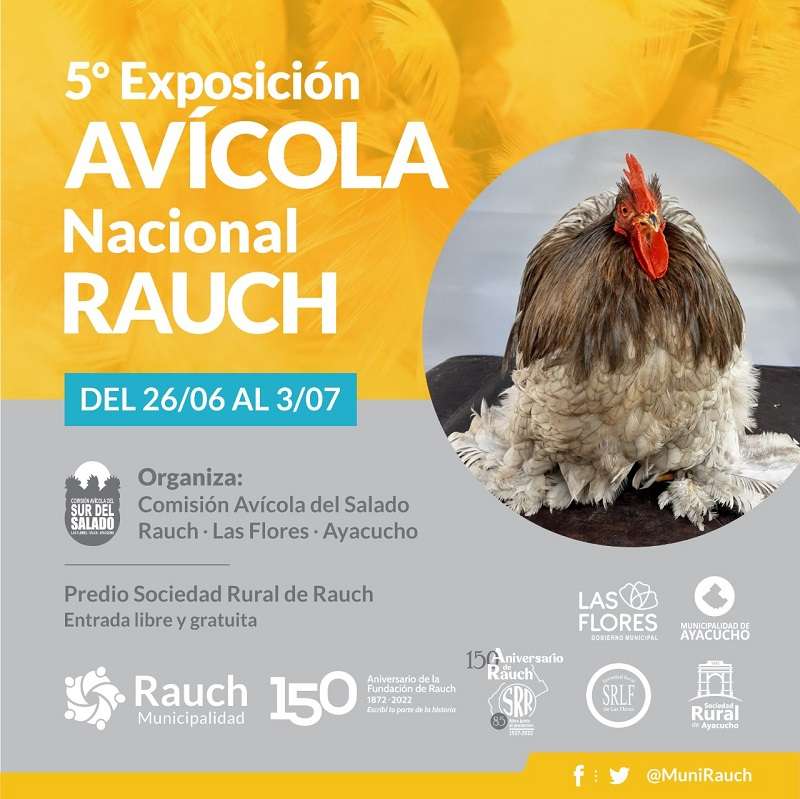 Con la organización de los Clubes Avícolas y los Municipios de Rauch, Las Flores y Ayacucho, volverá a realizarse de manera presencial la Expo Avícola más importante de la región. Se espera gran cantidad de inscriptos y alta calidad de ejemplares.
